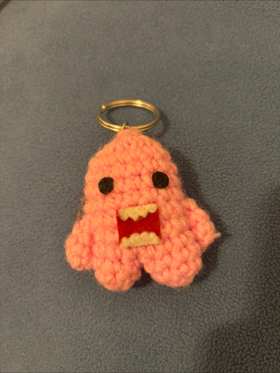 This is a cute, handmade pink crochet monster keychain! It's in great condition and ready to add some fun to your keys or bag Domo