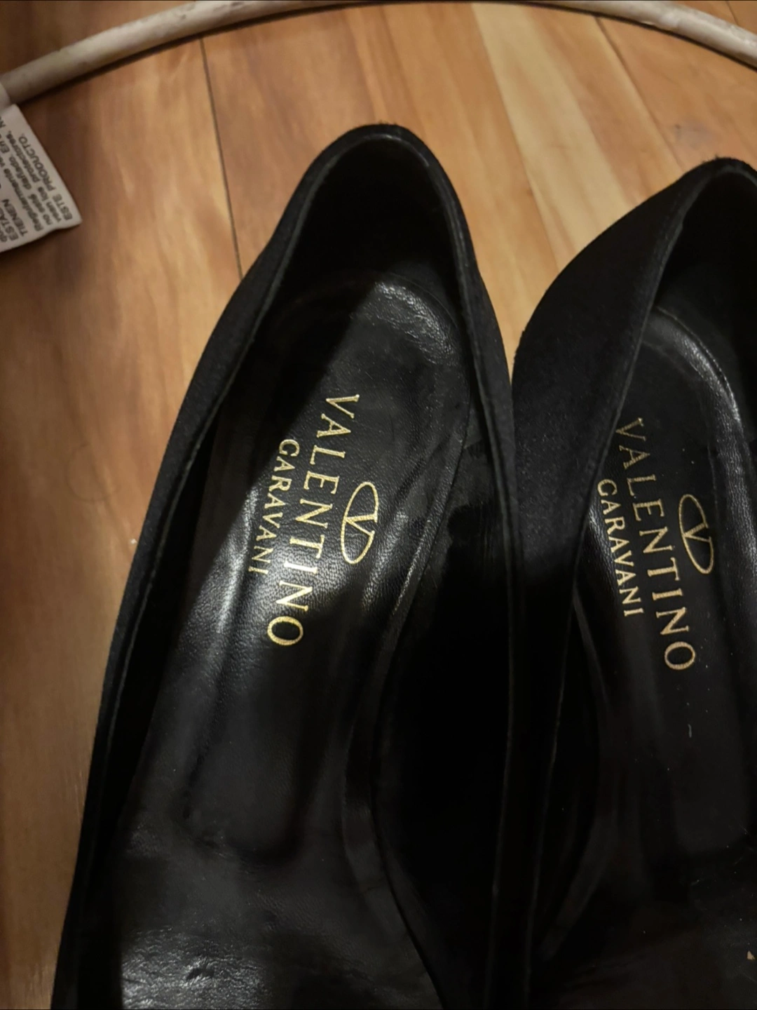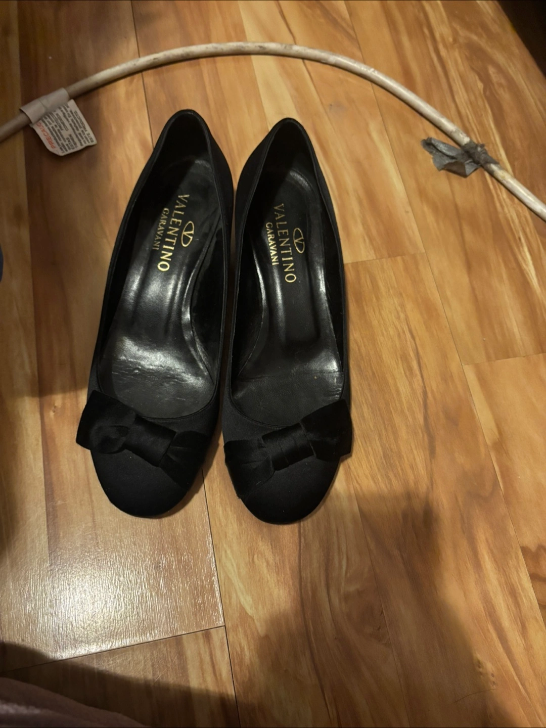 Selling a pair of Valentino Garavani black heels in size 37.5. They have a stylish design with a bow. Please see photos for condition.