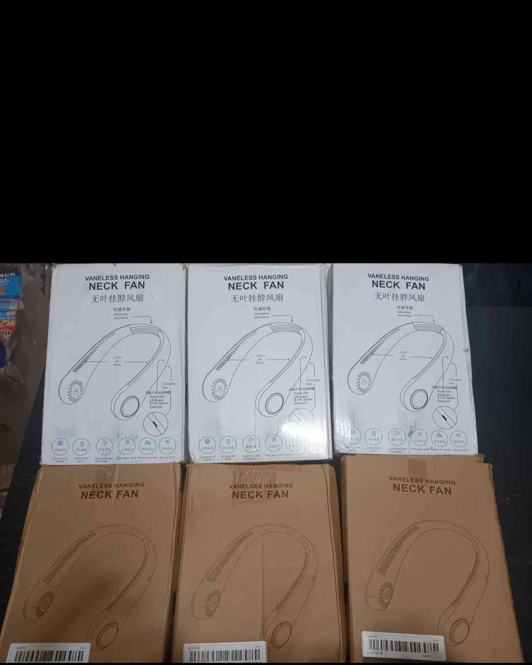 Vaneless Hanging rechargeable portable neck fans in its original box. It features an adjustable neck band for comfortable wear. It's lightweight and portable, perfect for staying cool on the go! available in Pink and white