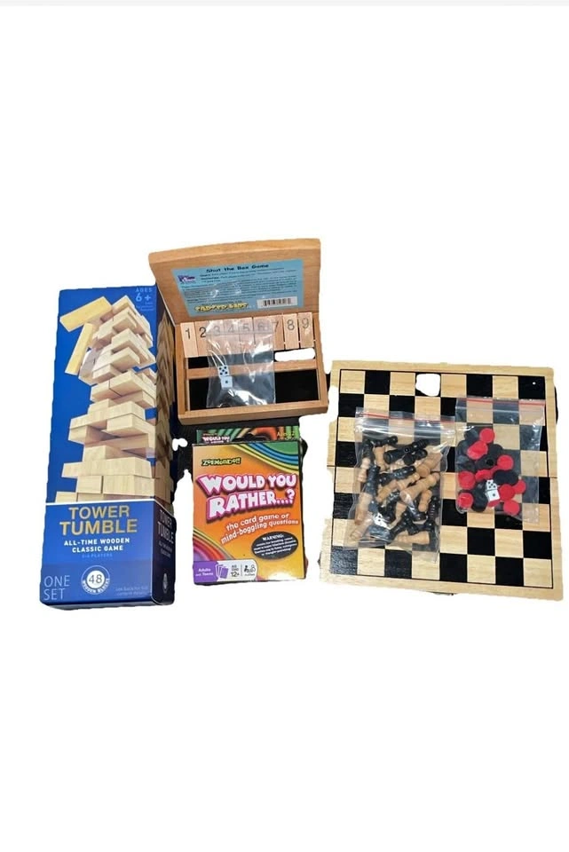 I have 4 travel size games that contains a total of seven Mini/Travel Games - Jenga, checkers, chess, backgammon,shut the box, would you rather. Perfect for a long family trip or anytime. Pick up at Wellington and Seminary.