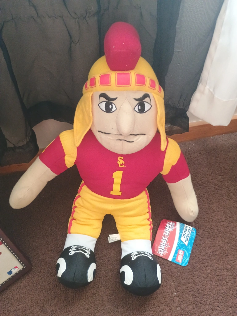 Selling a USC Trojans football mascot plush toy! It's in great condition and ready to cheer on the Trojans. Perfect for any USC fan!