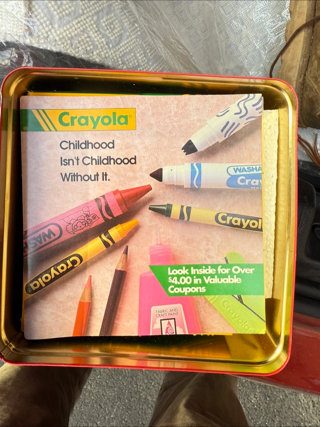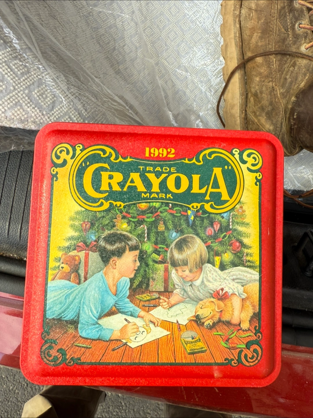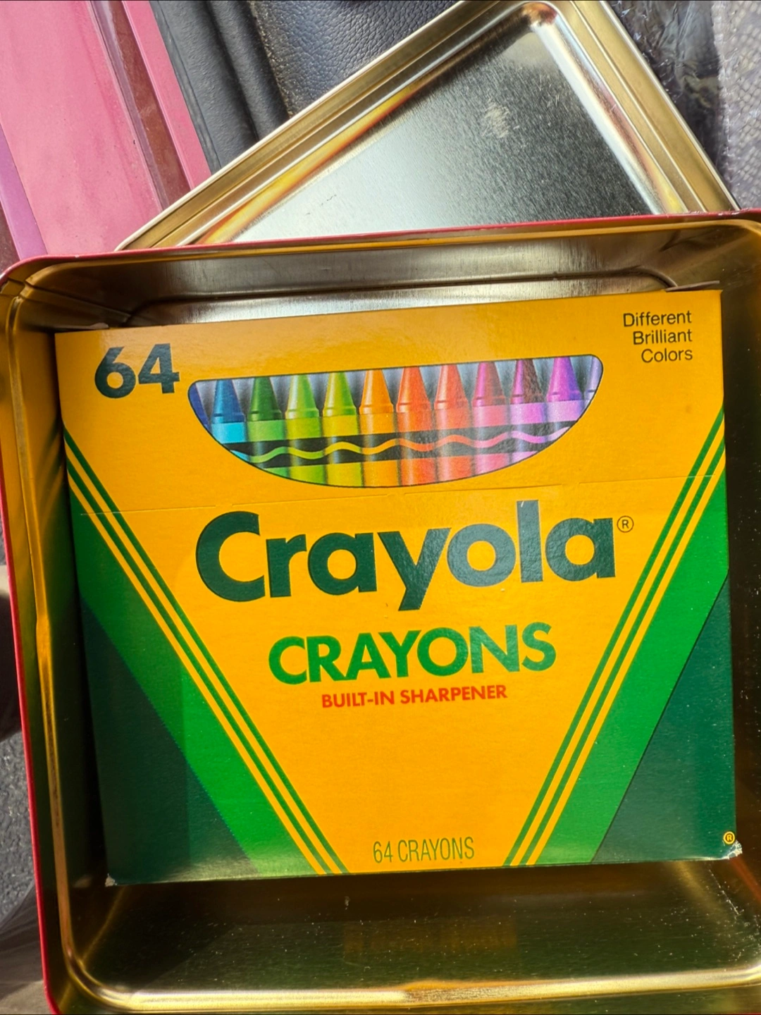 Selling a vintage Crayola crayon set! This is a 64-count box with a built-in sharpener. It comes in a decorative tin. Perfect for collectors or anyone who loves classic art supplies!