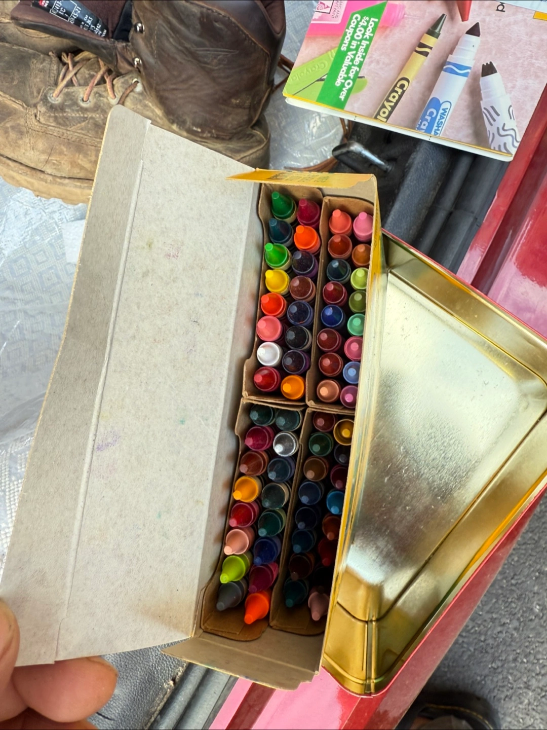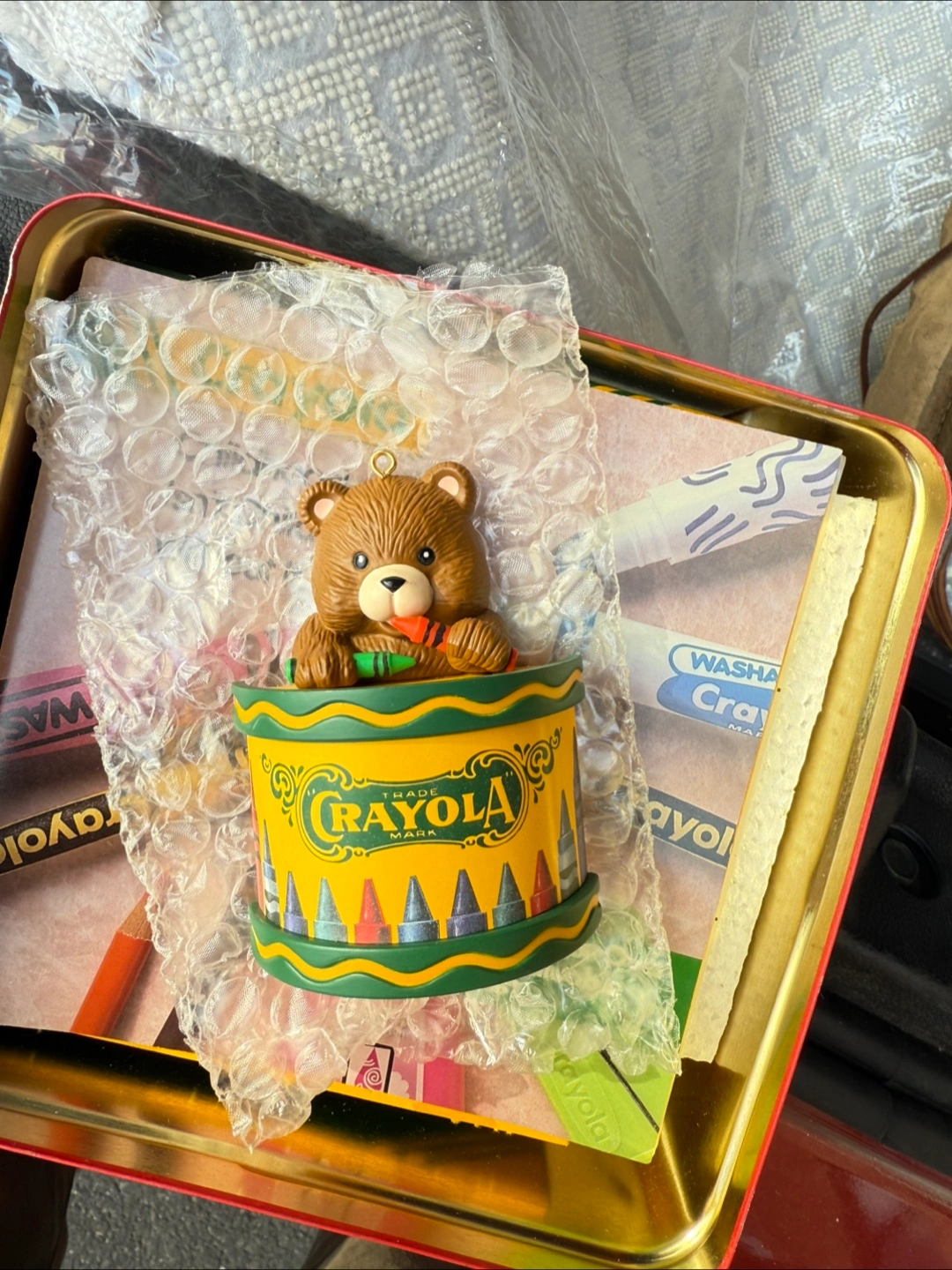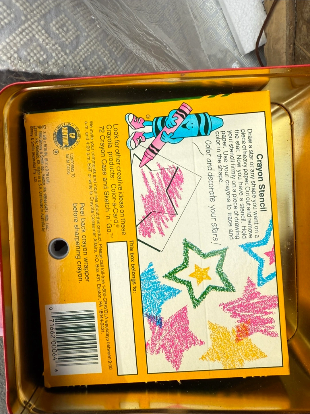 Selling a vintage Crayola crayon set! This is a 64-count box with a built-in sharpener. It comes in a decorative tin. Perfect for collectors or anyone who loves classic art supplies!