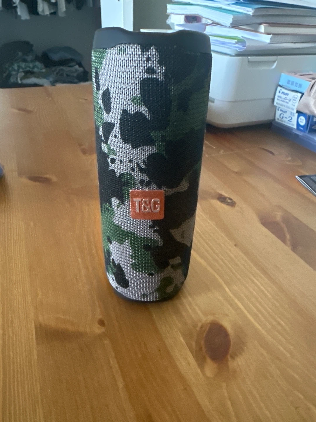112Selling a T&G portable Bluetooth speaker in a cool camouflage design! It's perfect for taking your music on the go. This speaker is in great condition and ready for a new home