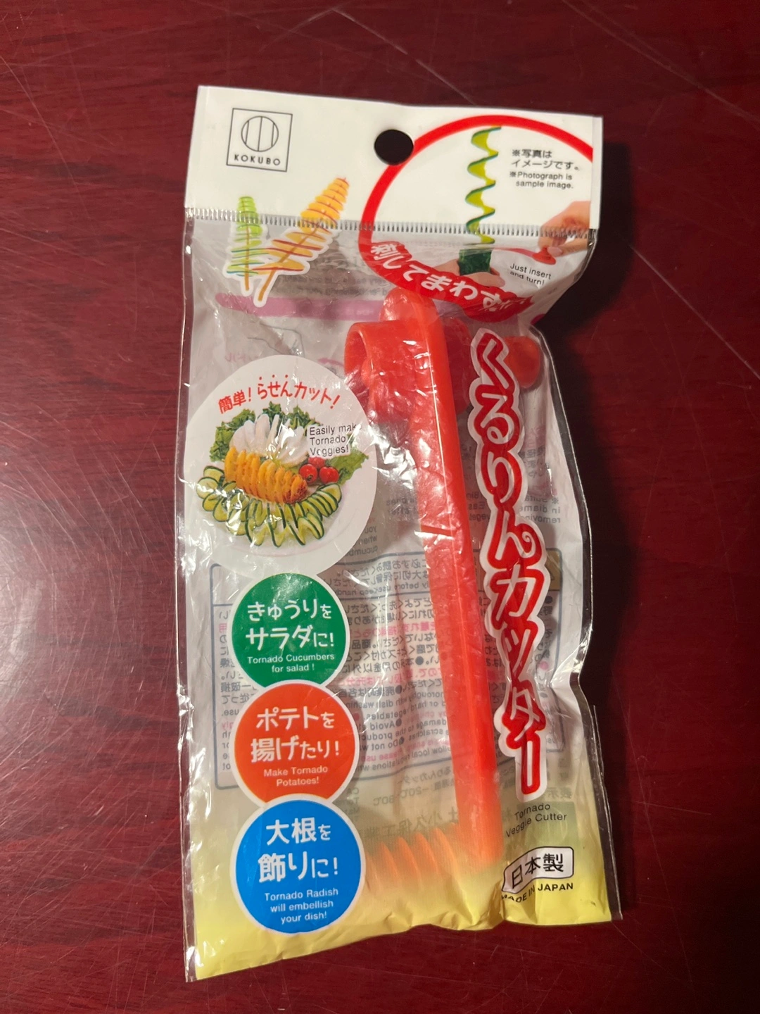 I'm selling a brand new Kokubo Tornado Veggie Cutter! It's perfect for making tornado cucumbers for salad, tornado potatoes, and tornado radish to embellish your dish. It's made in Japan and easy to use - just insert and turn!