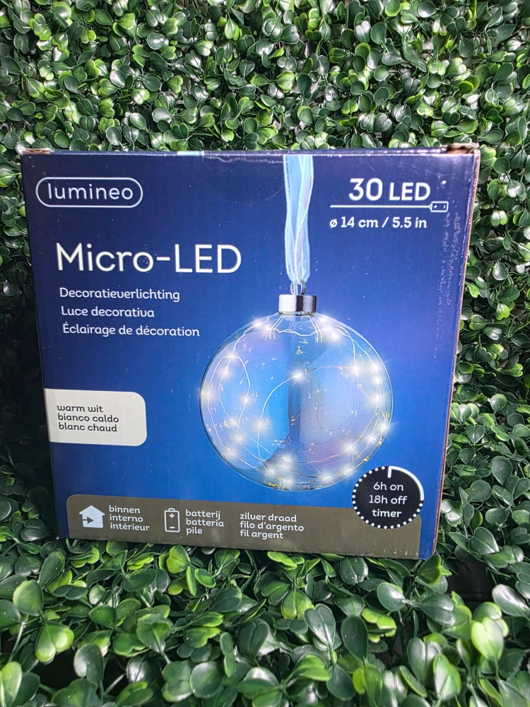 I'm selling a Lumineo Micro-LED decoratieveverlichting. It's a beautiful light to add to your home. It is a 30 LED light that is 14 cm / 5.5 in. It has a 6h on/18h off timer. Box included glass
