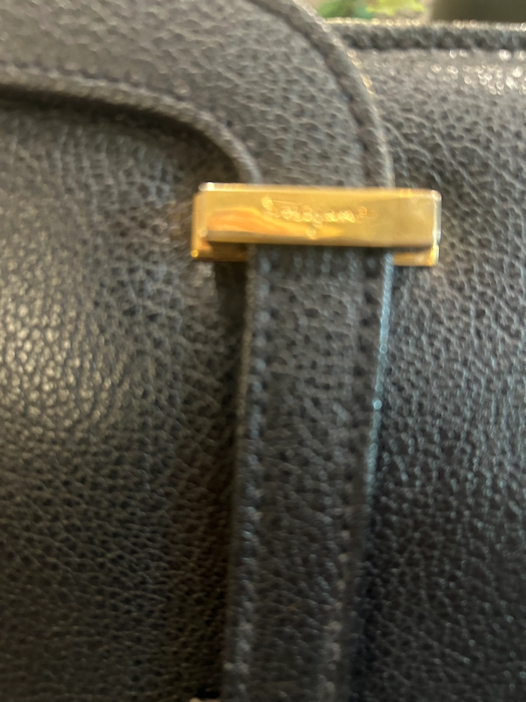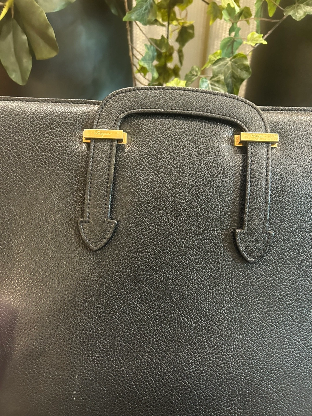 Selling a classic Salvatore Ferragamo briefcase in black leather. It's in good condition and perfect for everyday use or special occasions. The gold-tone hardware adds a touch of elegance to this timeless piece. Made in Italy.