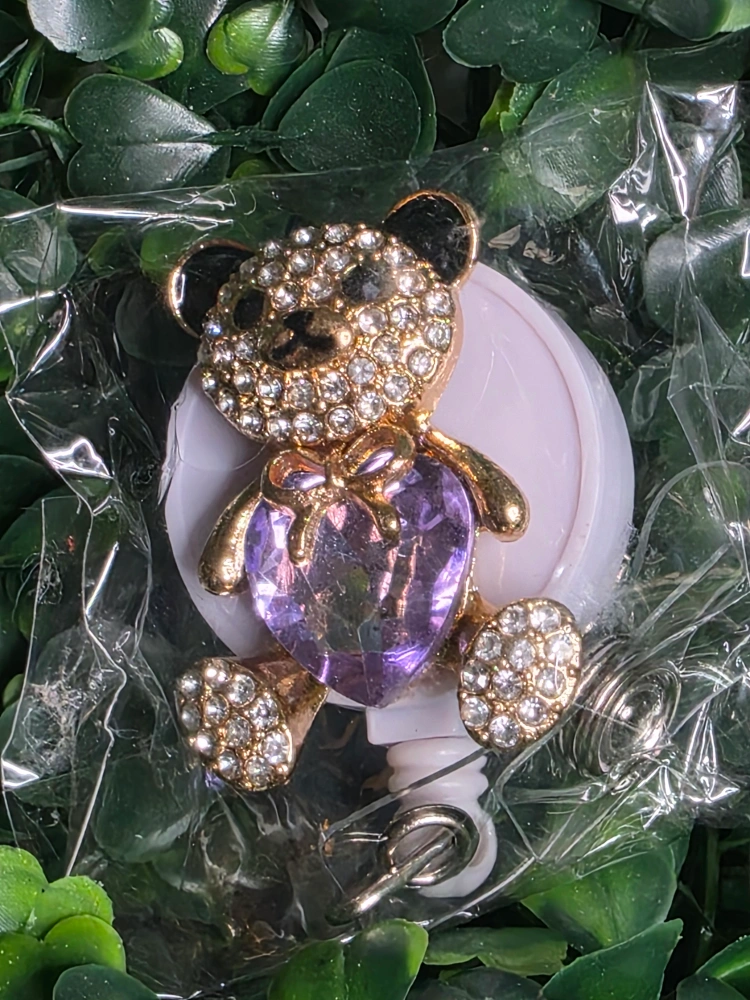 Check out this adorable teddy bear badge reel! It's brand new and features a gold-colored bear with sparkling rhinestones and a purple heart. Perfect for adding a touch of fun to your work or school attire! Best way to get a deal is if you make multiple offers on different items. I got lots of stuff for sale.