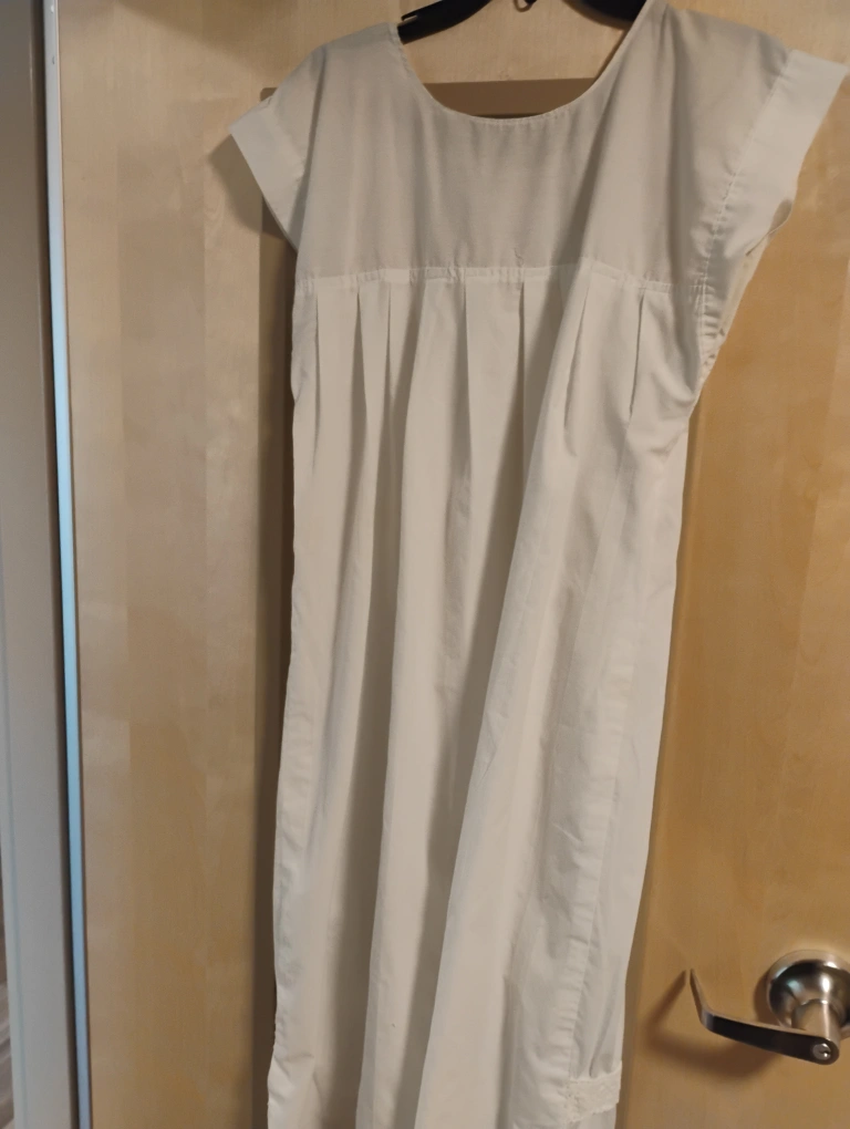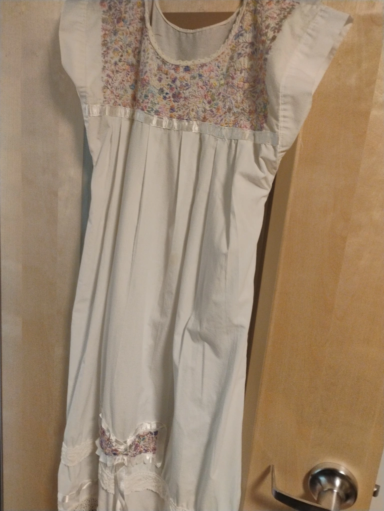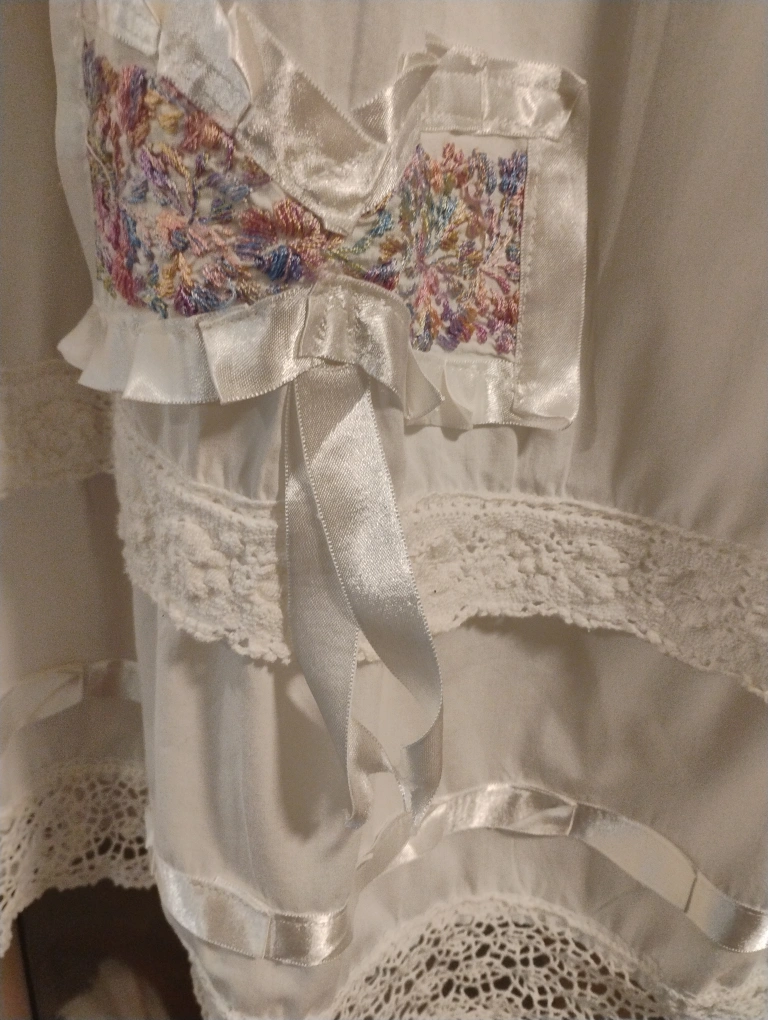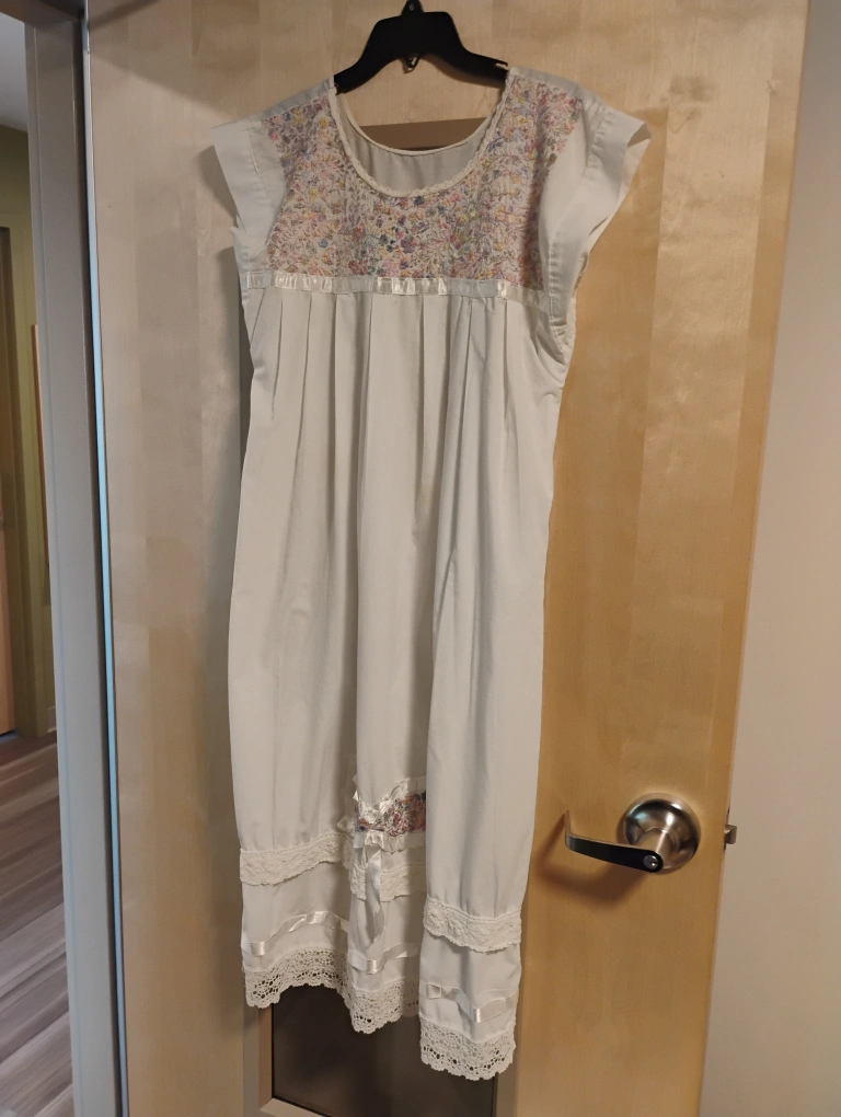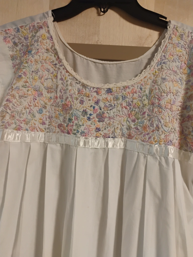 Selling a beautiful white dress with floral embroidery. It has a ribbon and lace trim. Perfect for a special occasion or everyday wear!