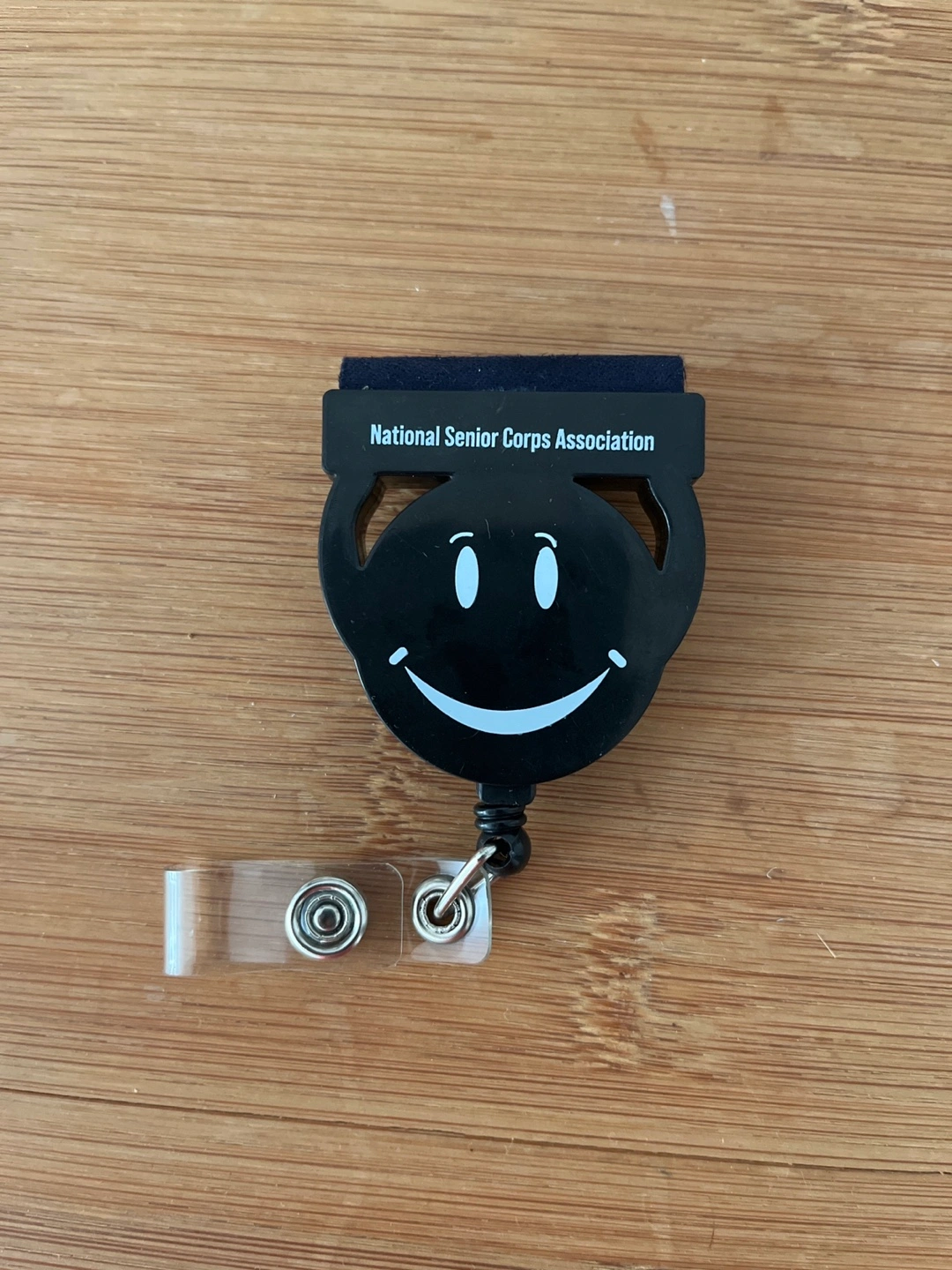 1000+Giving away a badge reel from the National Senior Corps Association! It's in great condition and ready to hold your ID or access card. The smiley face design adds a touch of fun to your everyday wear
