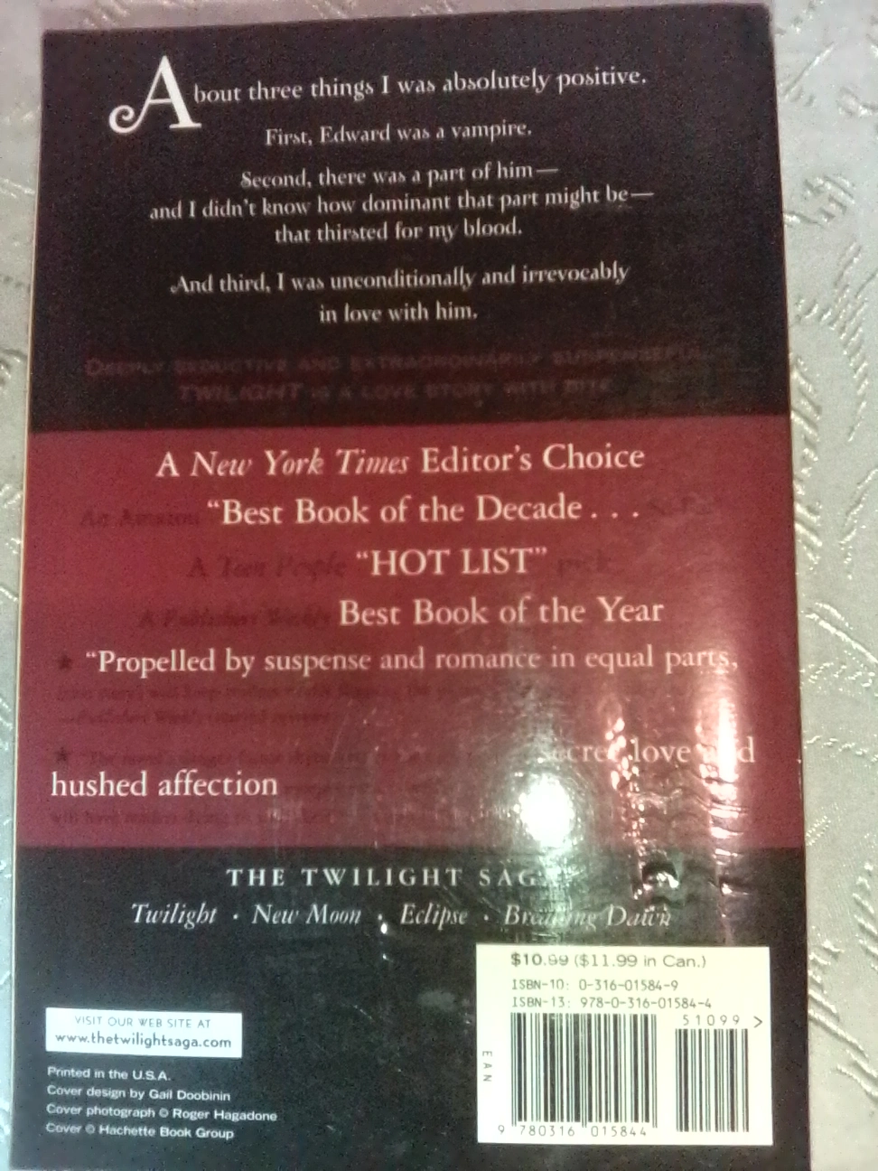 Selling the book Twilight by Stephenie Meyer. It's part of The Twilight Saga. A New York Times Editor's Choice and a Best Book of the Decade! Come and check it out...