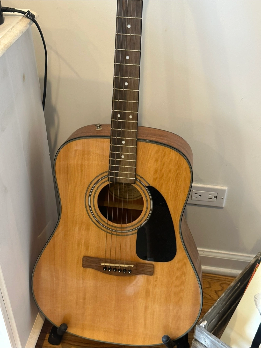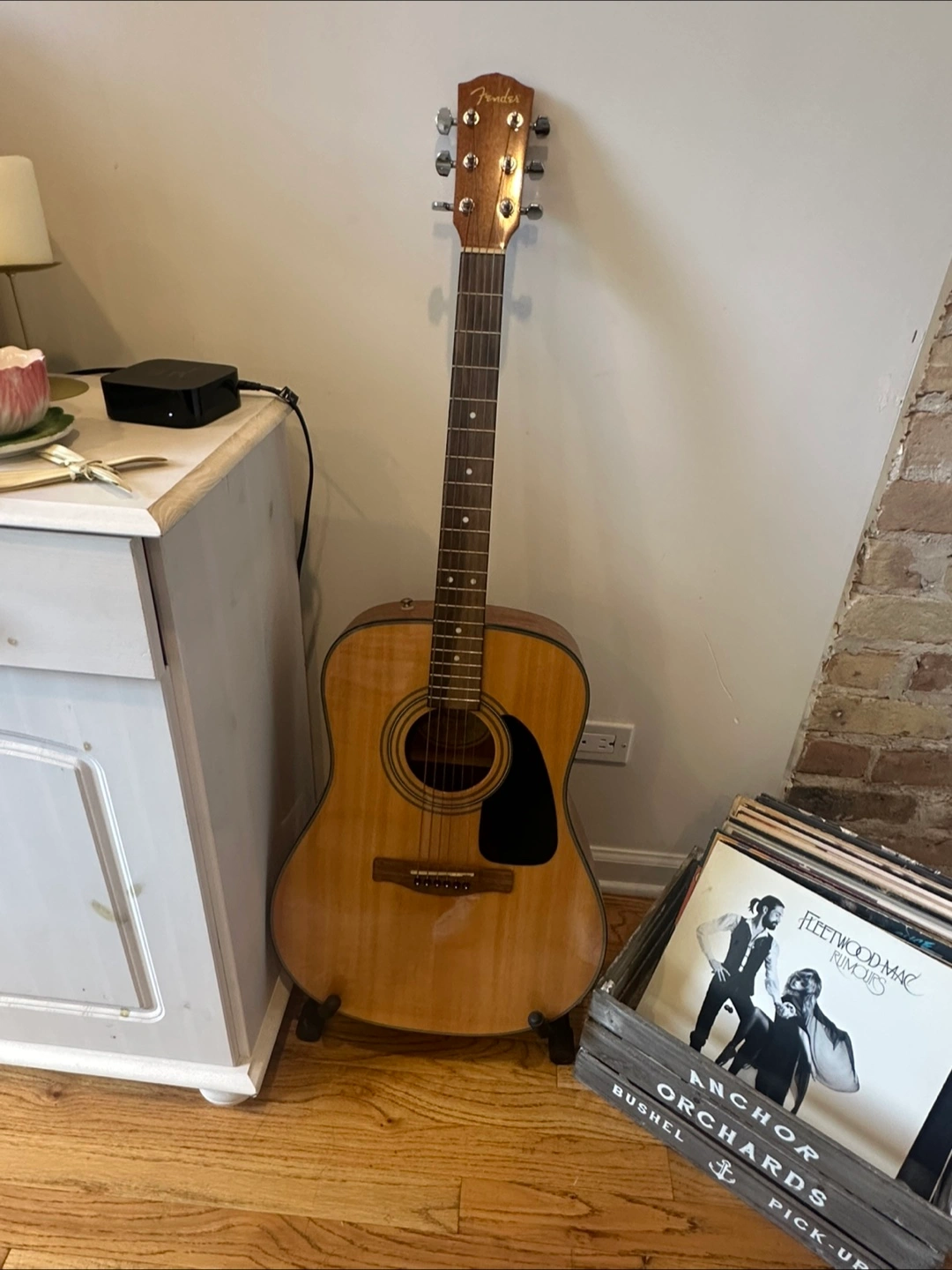 Selling a Fender acoustic guitar in good condition. It's perfect for beginners or experienced players. This guitar has a warm and balanced tone. I got this during the pandemic to start a new hobby and barely touched it. Now I’m moving and I would love for this to find a new home! Will include guitar stand and soft case. Feel free to ask any questions!