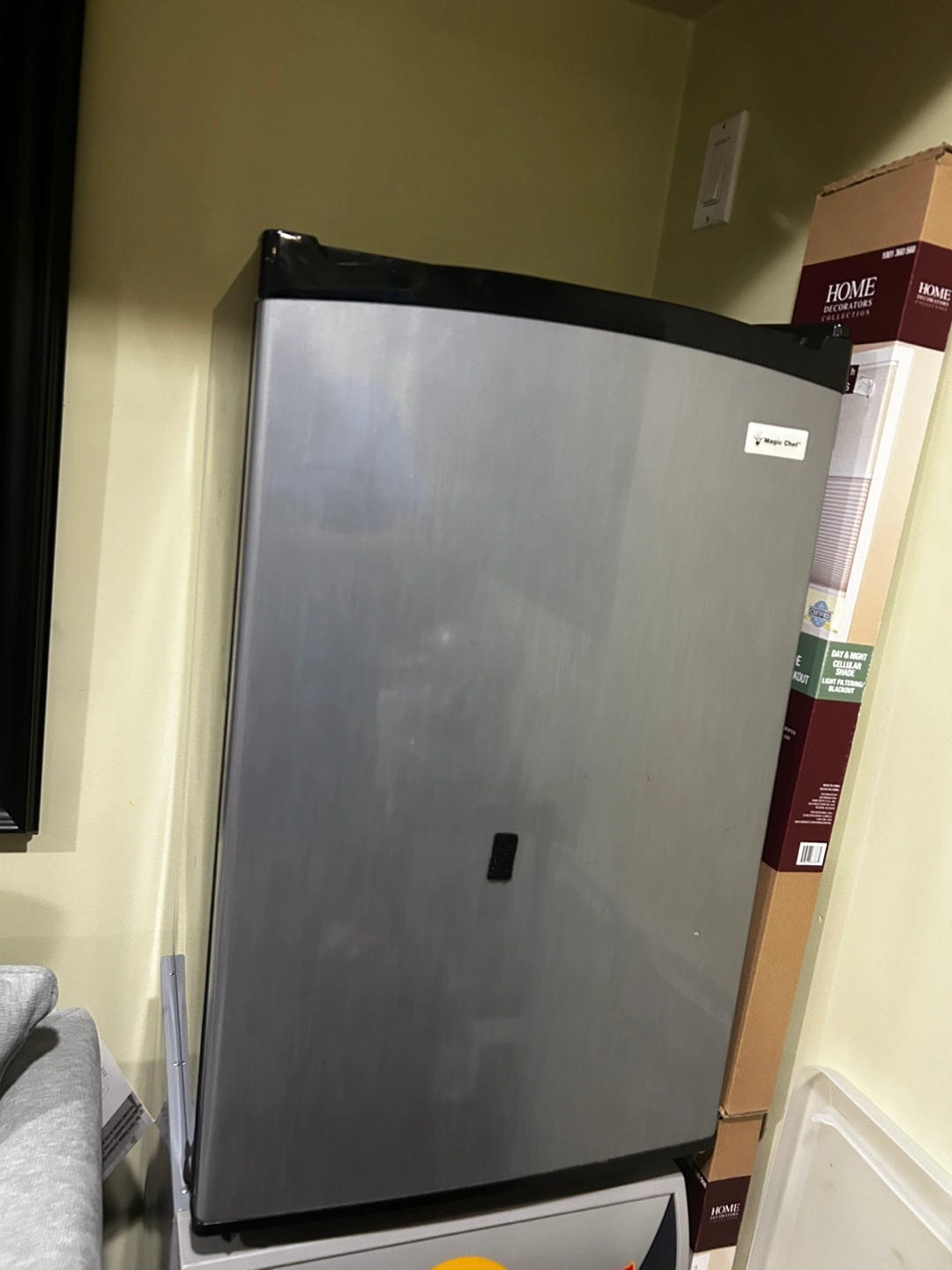 Selling a compact Magic Chef refrigerator. It's in good condition and perfect for a dorm room, office, or small apartment. The dimensions are H 27” x W 17” x D 17” It features adjustable shelves to accommodate different items. Great for keeping your drinks and snacks cold!