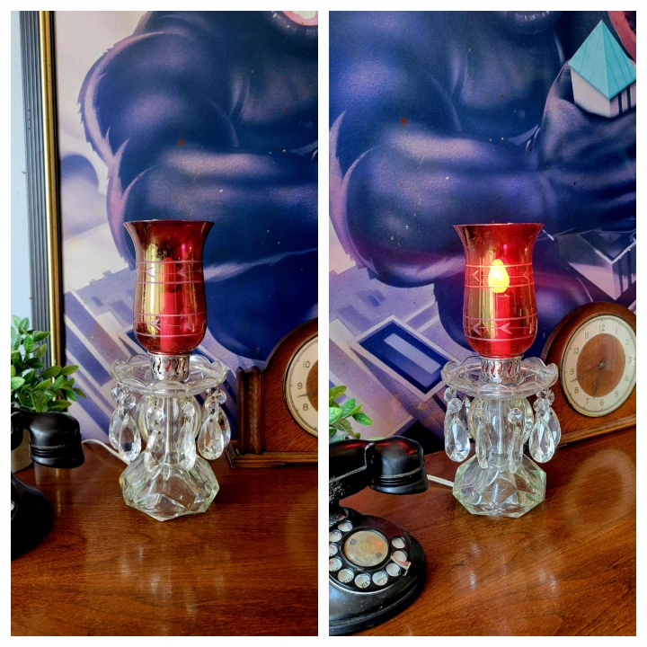 Vintage cranberry glass and crystal table lamp.