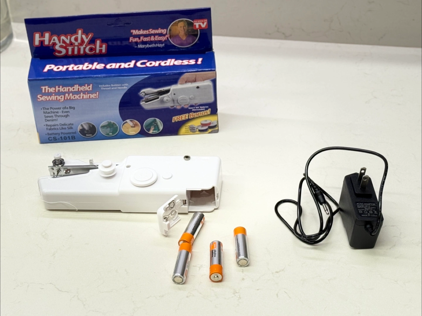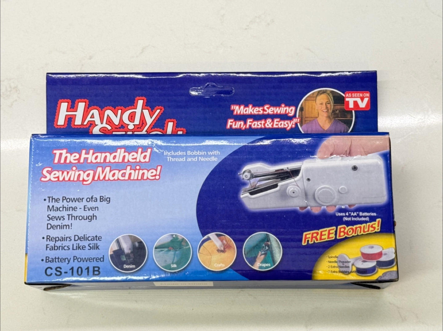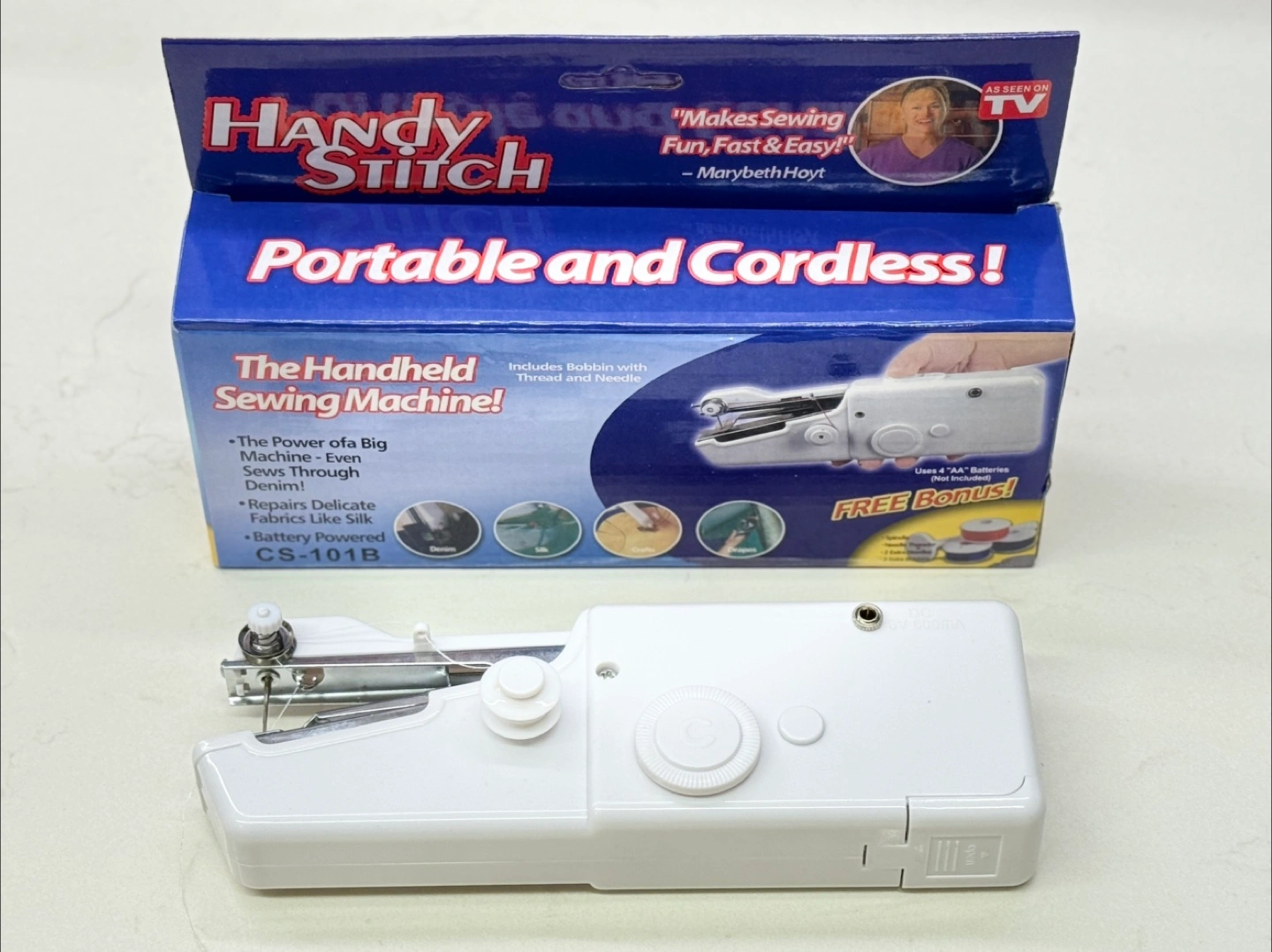 1000+I'm selling a brand new Handy Stitch handheld sewing machine! It's still in its original packaging. - Portable and cordless - Includes bobbin with thread and needle - Can sew through denim and repair delicate fabrics like silk - Battery powered Threaded already, only tested to see if it works. Not used, just like new in the box!