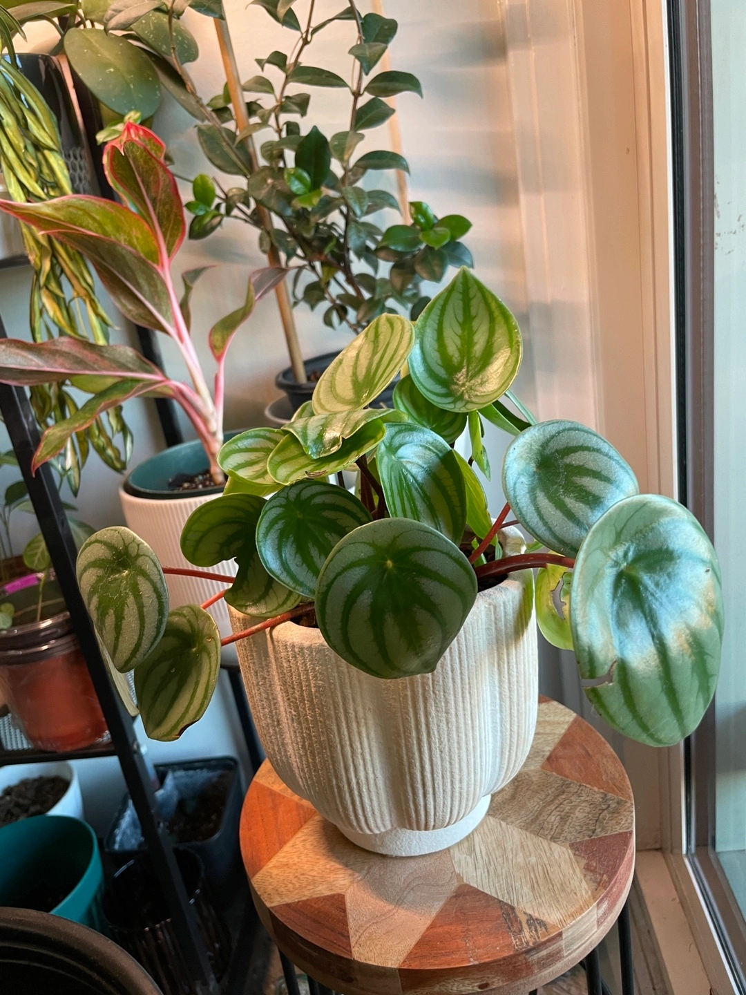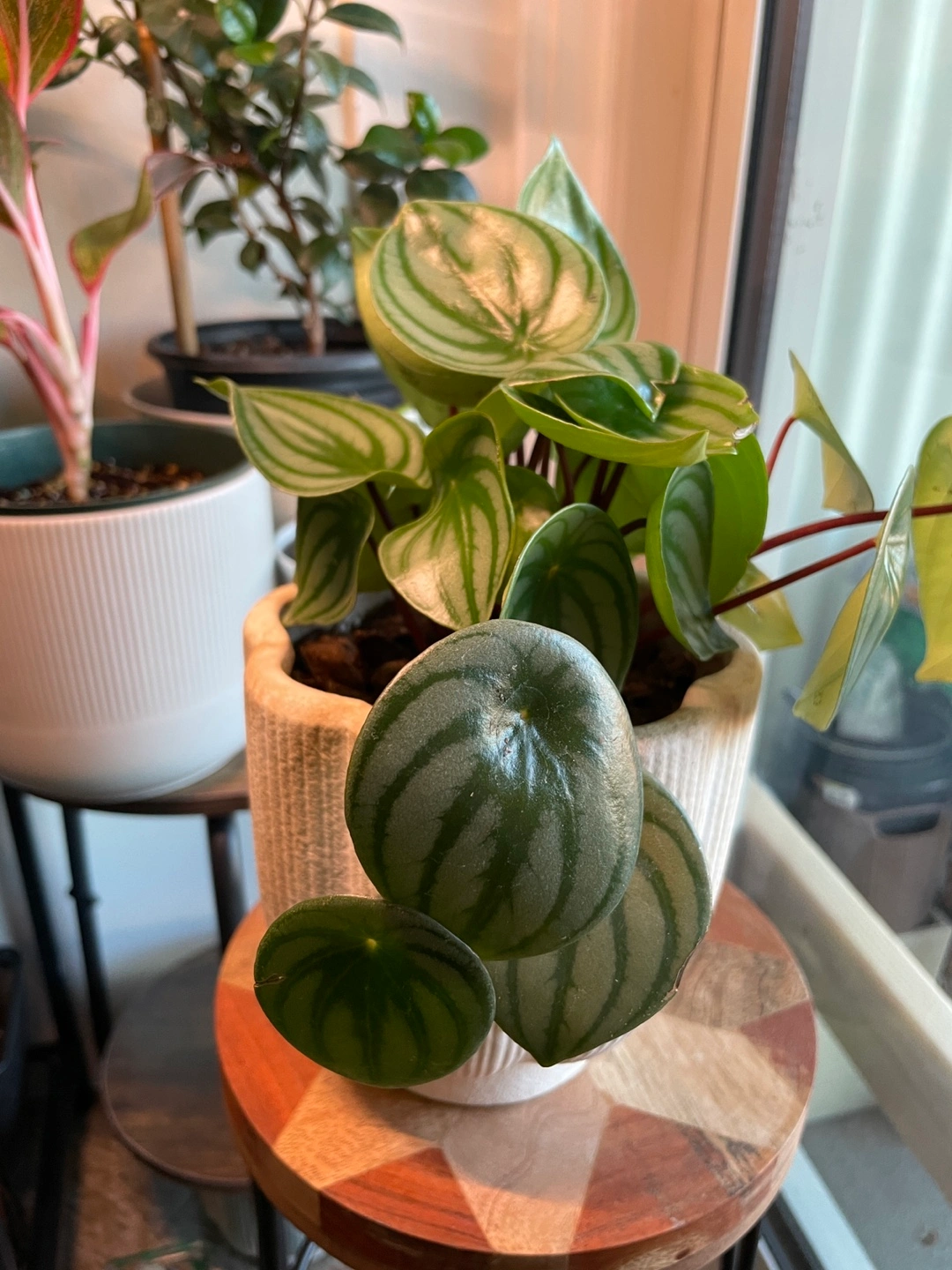 I'm selling a healthy and vibrant Watermelon Peperomia plant! It has unique striped leaves that resemble a watermelon rind. This plant is easy to care for and adds a touch of greenery to any space.