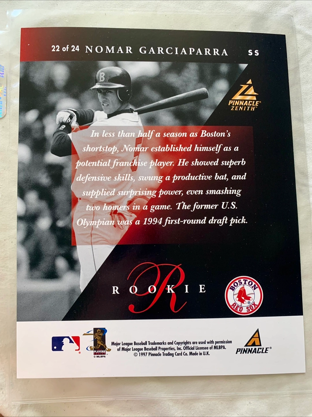 Capture the essence of America's favorite pastime with this set of 5 Pinnacle Zenith (8x10) Picture Cards. Each card celebrates a legend of the Major League Baseball (MLB), providing fans and collectors with a piece of sports history. The cards, produced by Pinnacle, are a must-have for any enthusiast looking to enhance their collection with high-quality, glossy memorabilia. The allure of these cards lies in their striking visual appeal and the prestige of the athletes showcased. Whether for display or as a treasured keepsake, these trading cards serve as a tangible connection to the golden era of baseball. Ideal for collectors who appreciate the finer details and the rich legacy of the sport.