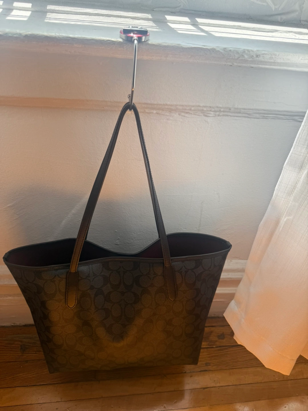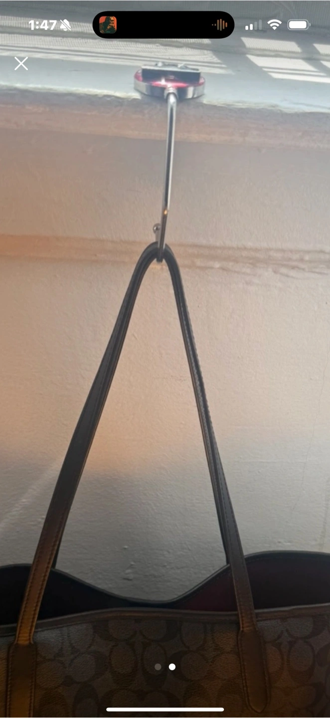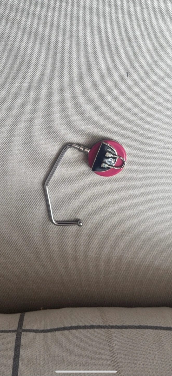692This is a pink purse hook iperfect for hanging your purse on a table or desk. It's in good condition (purse not included).