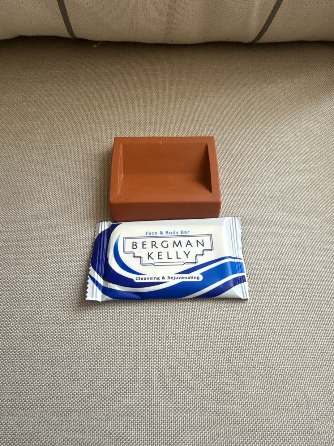 Bergman Kelly face and body bar with a soap dish. The soap is cleansing and rejuvenating. Perfect for adding a touch of luxury to your daily routine.