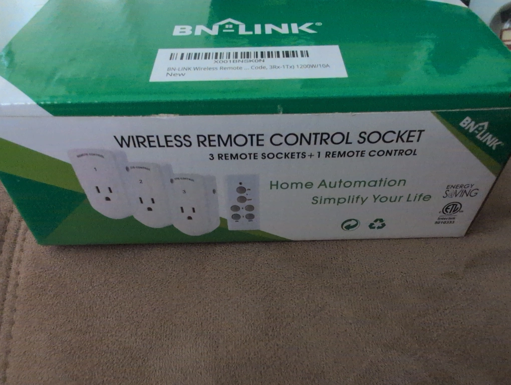Selling a BN-LINK Wireless Remote Control Socket. Could not figure out how to use but if you do then it should simplify your life turning on electronics. The outlets are manually operated or by the remote control