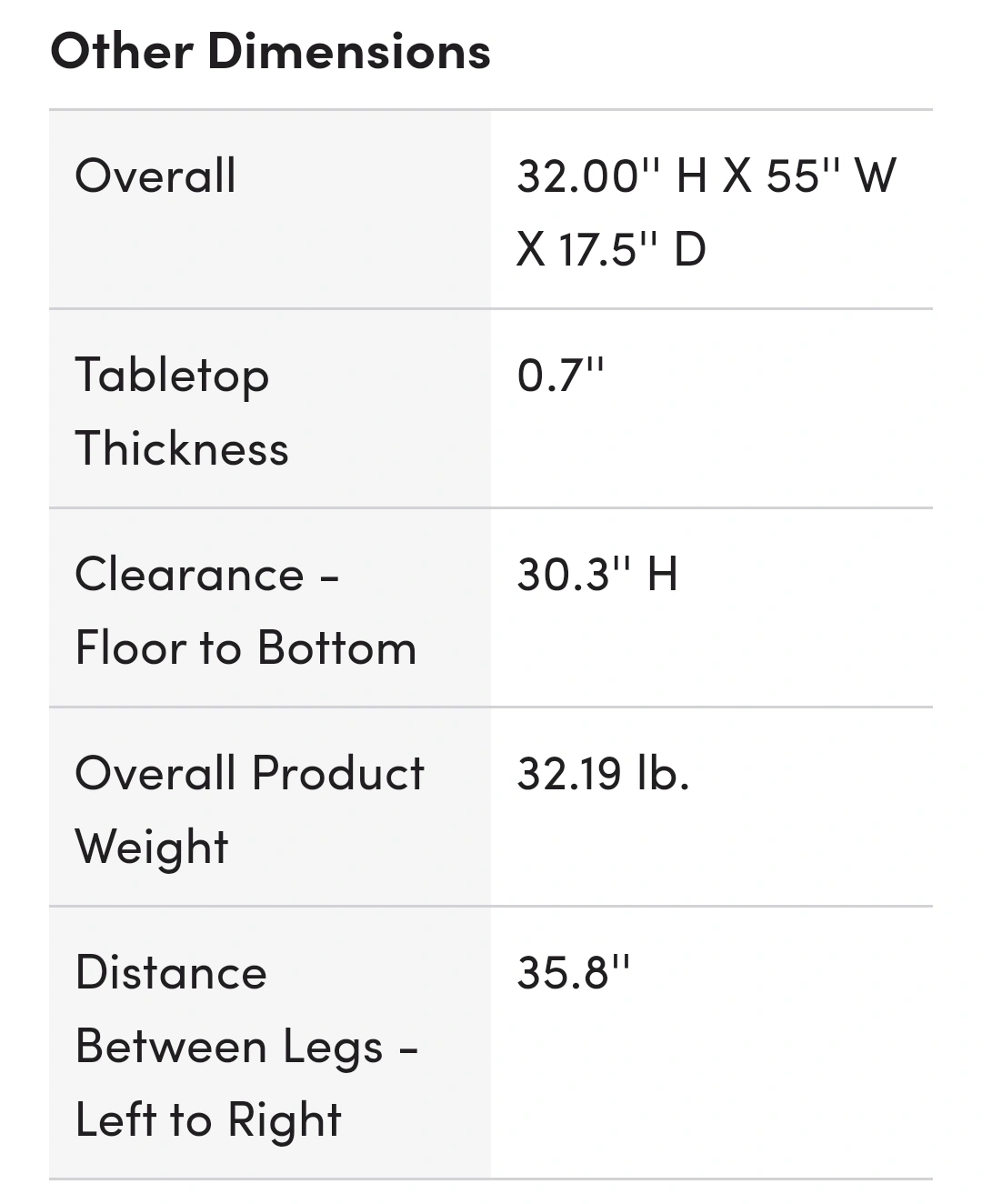 - Dimensions32" H x 55" W x 17.5" D