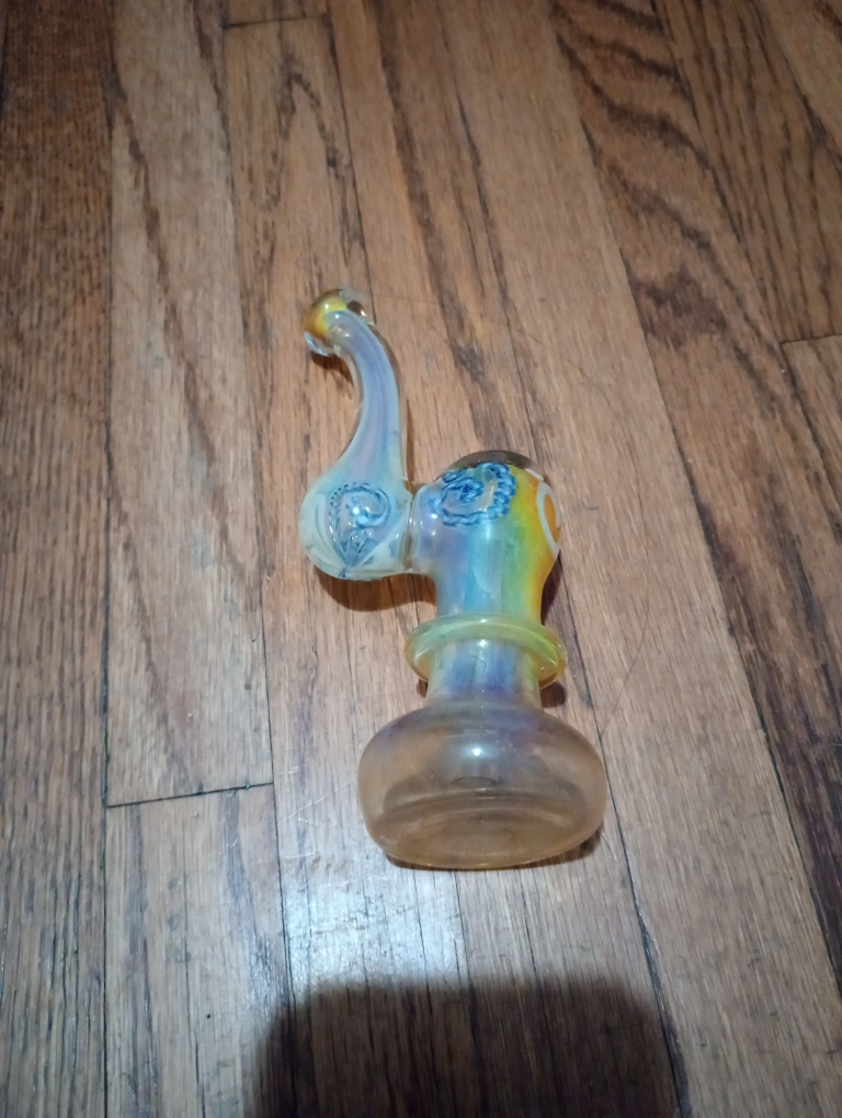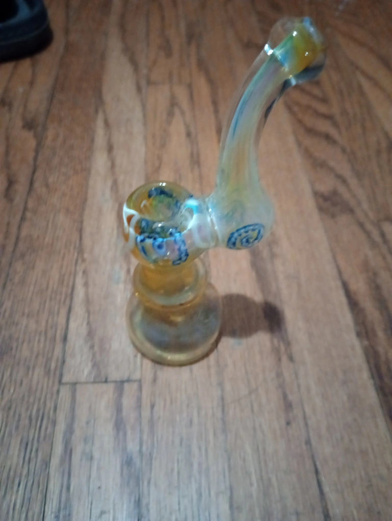 small discreet portable bubbler complete with carburetor. double blown for extra strength and water reservoir to filter smoke.
