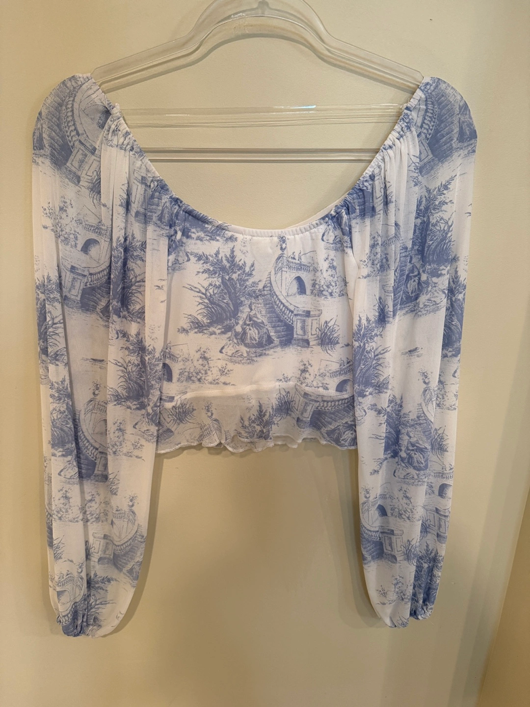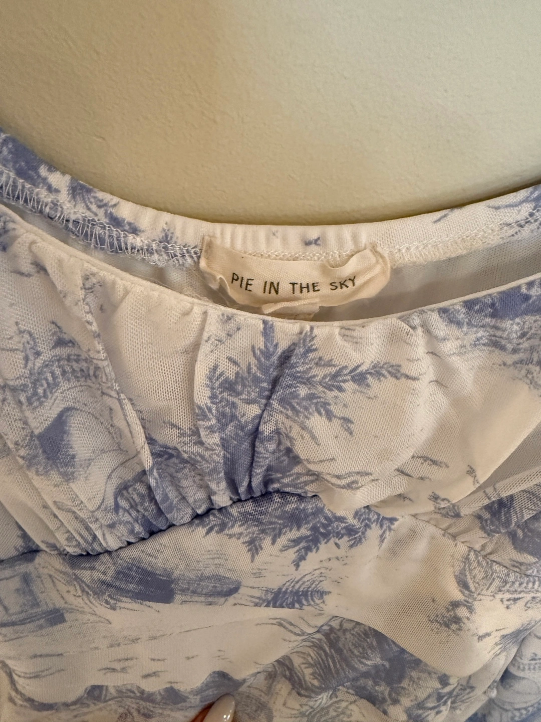 Cute Pie In The Sky crop top with a blue toile print! It's a size XS and in great condition. Perfect for a stylish and breezy look!