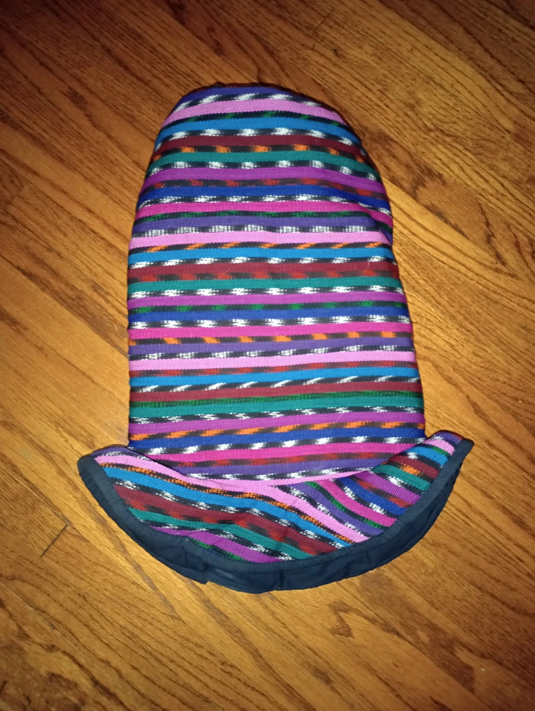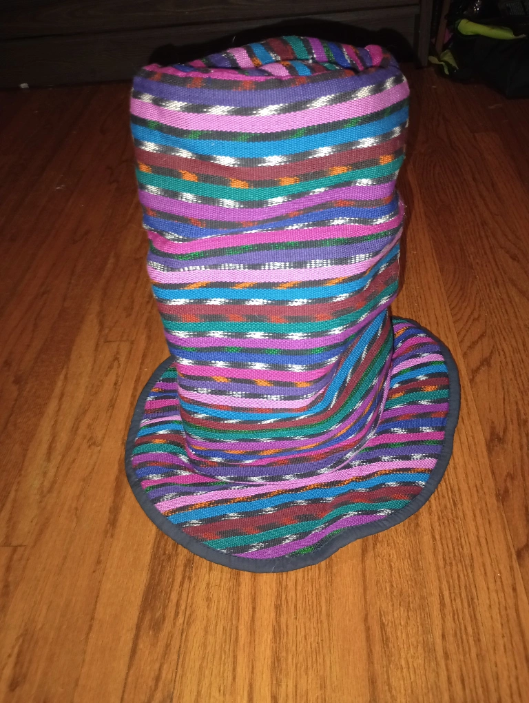 This hat is made of 100% cotton and made in Guatemala. It has a unique design with colorful stripes.
