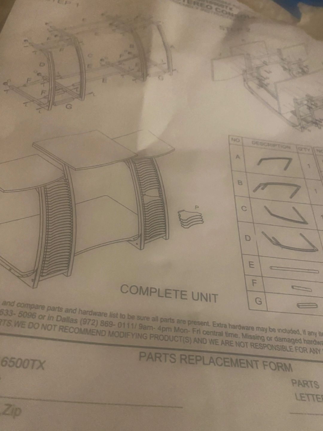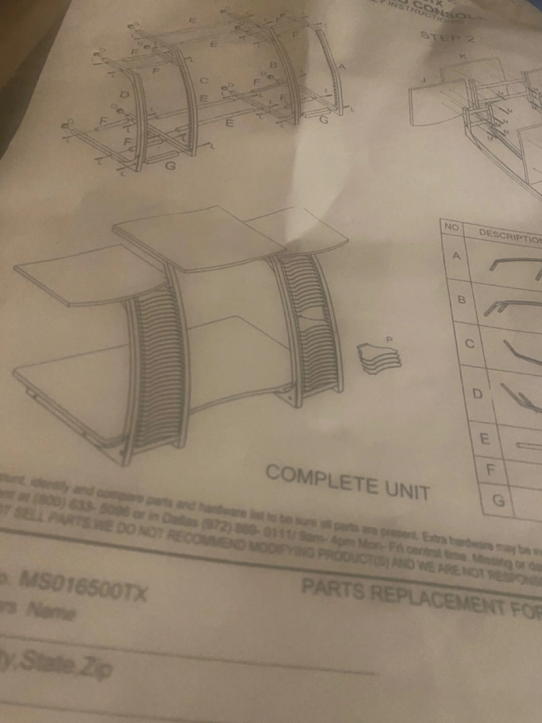 Here is a console table, style number MS016500TX. Please check the images for the complete unit and parts replacement form