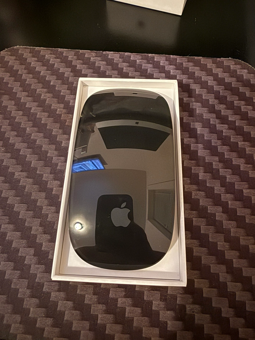 144Selling an Apple Magic Mouse in black! It comes with its original box. It's in great condition and ready for a new home. Perfect for your Mac setup!