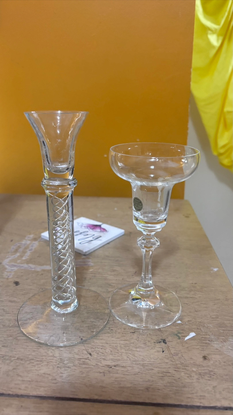 Selling a pair of elegant clear glass candlestick holders. They're in great condition and ready to add a touch of sophistication to your home decor! They are made of clear glass. The two for $5