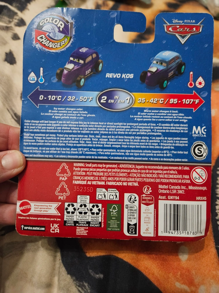 I'm selling a Disney Pixar Cars Color Changers Revo Kos toy car! This cool toy changes color with water temperature. It's like having two cars in one!