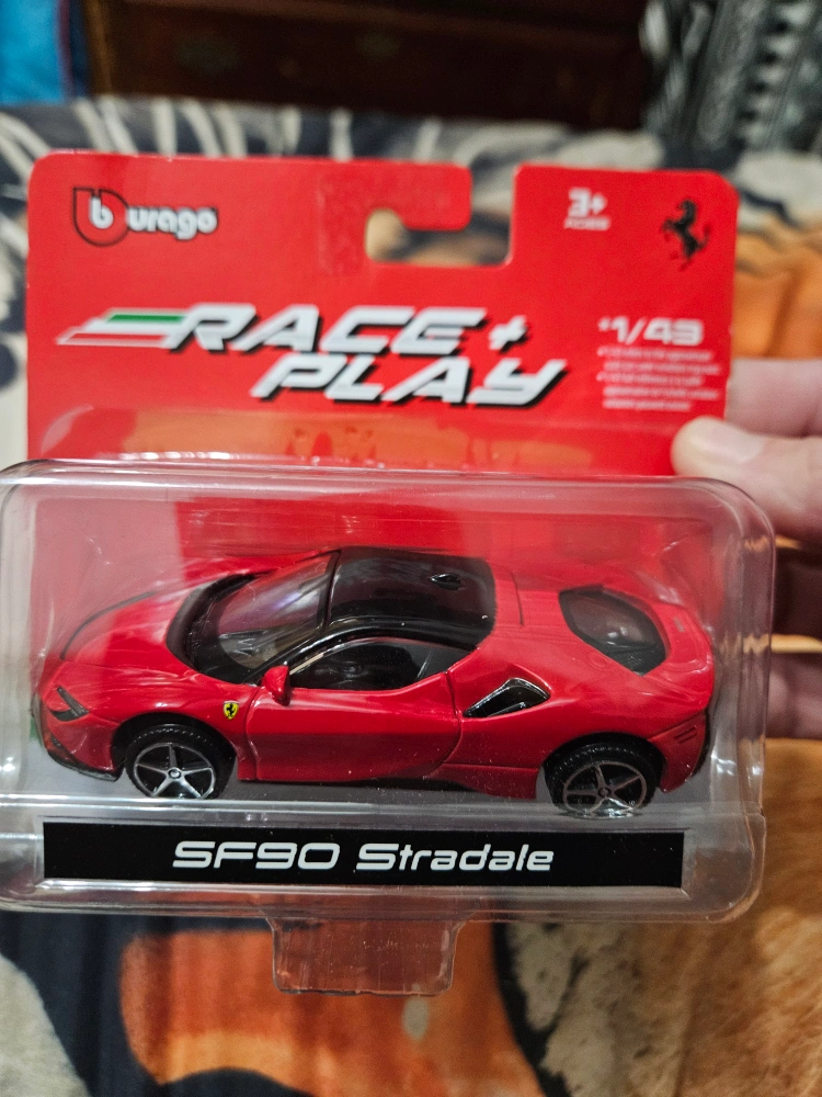 Selling a Burago Ferrari SF90 Stradale diecast model car. It's a 1/43 scale model from the Race & Play series. Great for collectors or as a gift!