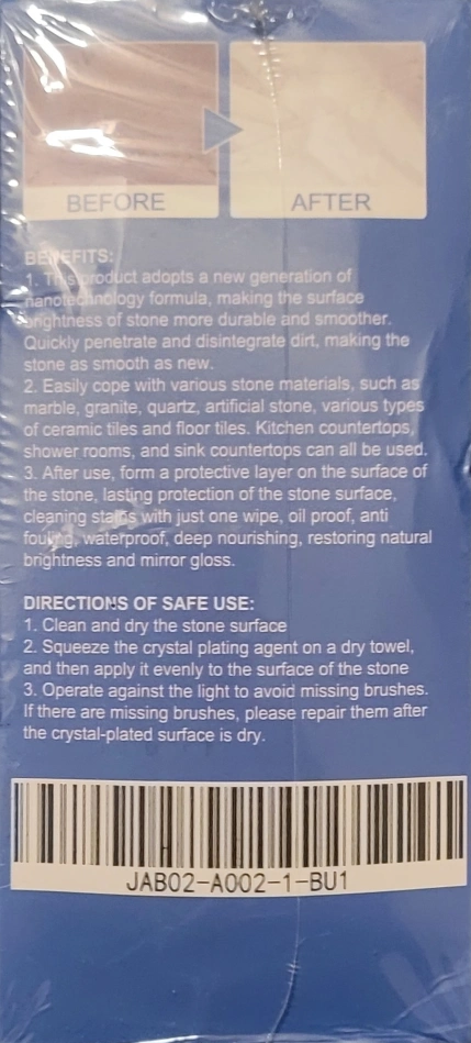 60I'm selling LAYSUING Stone Crystal Plating Agent. This product adopts a new generation of nanotechnology formula, making the surface brightness of stone more durable and smoother. It quickly penetrates and disintegrates dirt, making the stone as smooth as new. It's waterproof and brightening, providing strong stone protection. It's designed to clean and brighten luster!