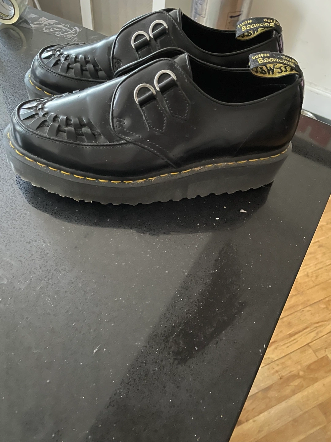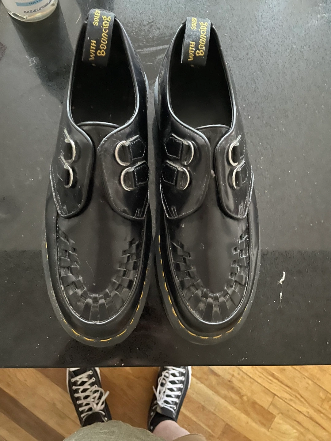 These Dr. Martens shoes feature a unique woven leather design and monk strap closure. They are in great condition and ready for a new home! They have the classic Dr. Martens sole with bounce.