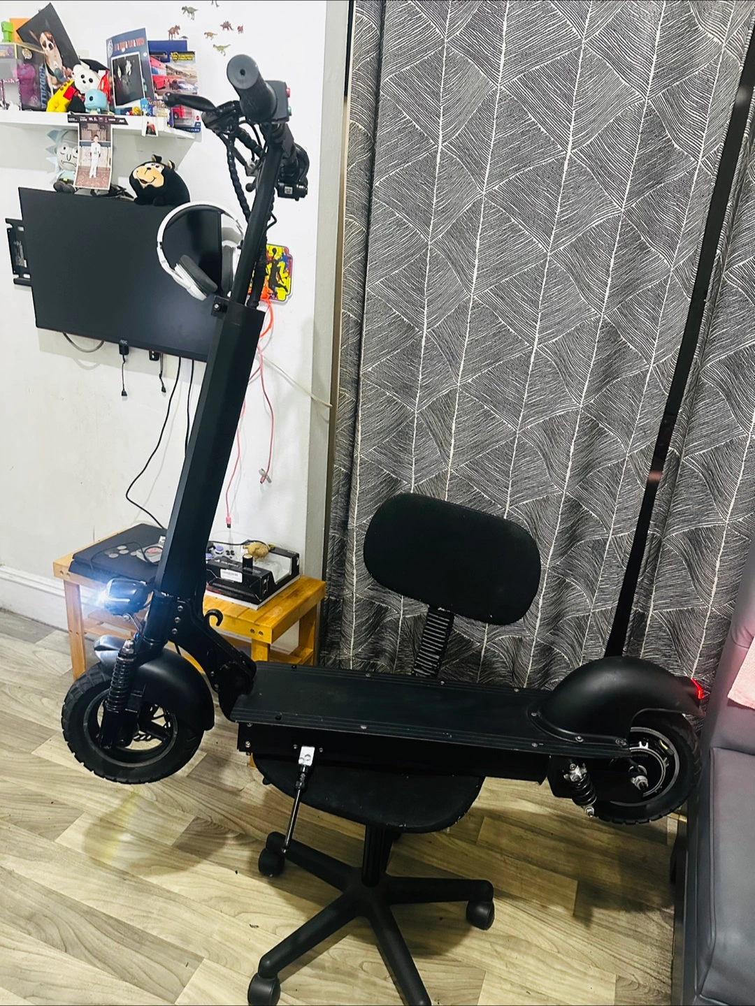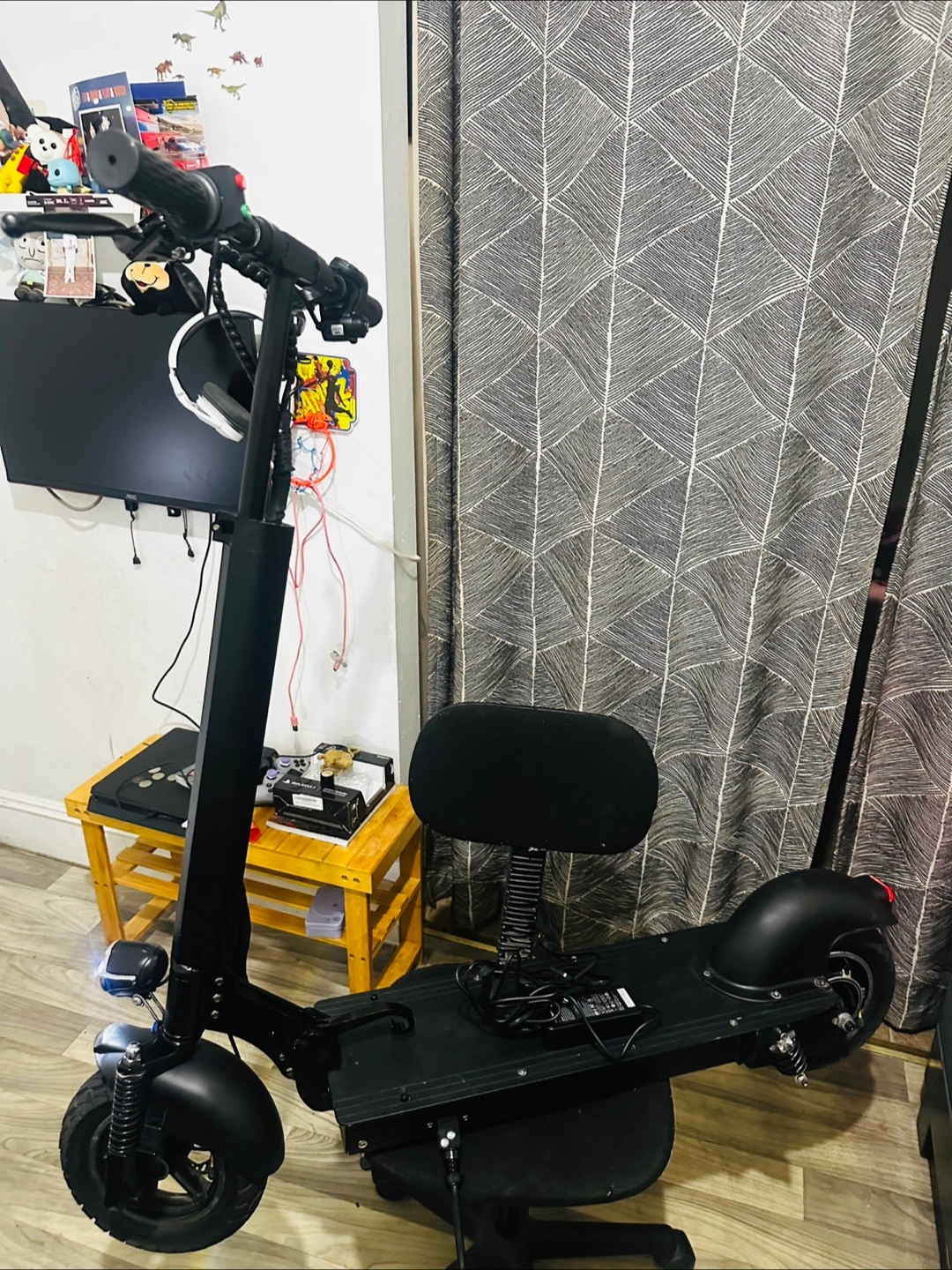 39Selling a used electric scooter. It has a seat attached for comfortable rides. Great for getting around town! Run fast strong 45 miles run run fast 30 mph comes with charger full working condition good scooter for make uber everything works 100%