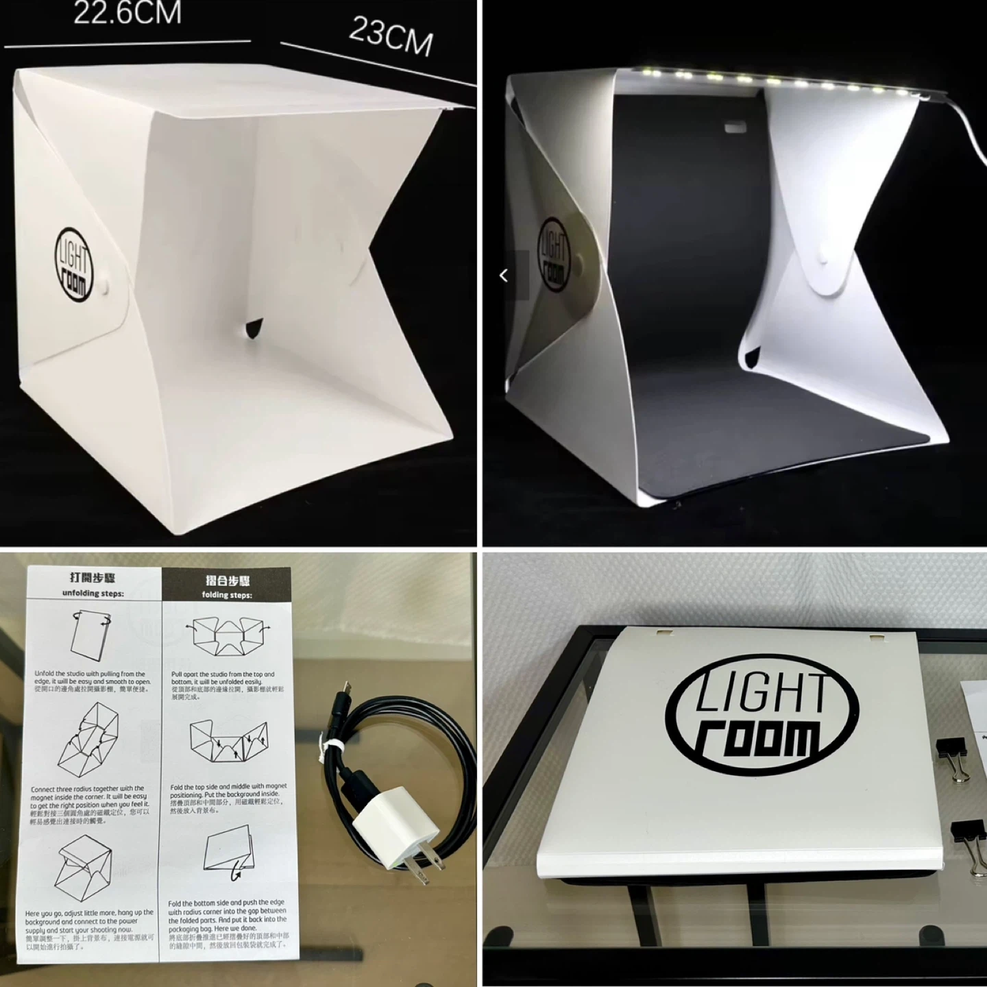 Small Foldable LED Light Tent / Portable Photo Studio BOX – w/ Black Backdrop