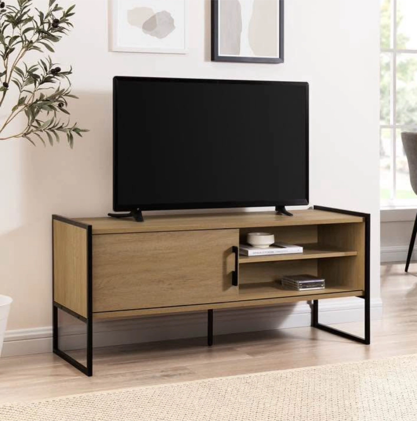 New Sleek Minimalist Modern 48” Coastal Oak TV Stand * New In the Box - Never Opened or Used / In Excellent Condition! * Dimensions: 48'' W X 15.75'' D X 21.13'' H * Shelf: 5'' H X 23'' W X 12.88'' D * Interior: 11.25'' H X 12.88'' D X 23'' W * Legs: 7.88'' H * Magnetic-close, sliding door provides contemporary storage * 2 adjustable shelves for a customizable solution * Sleek, Modern Hardware * 2 cord management ports keep cables tidy * Easy to assemble * Trusted Seller / Read/ See My Reviews! Follow Me For Amazing Deals Listed Daily!