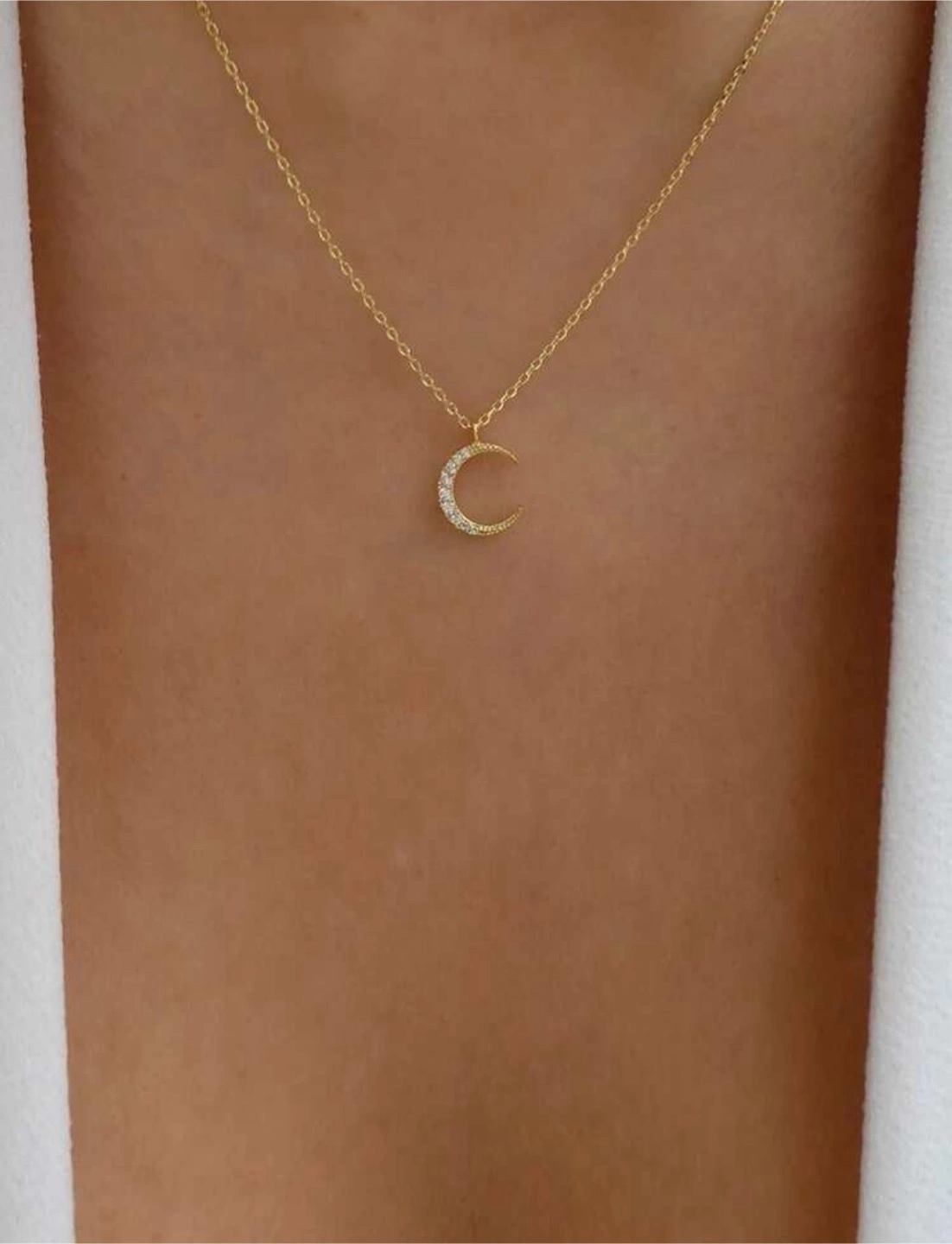 670Selling a cute crescent moon necklace! It's a delicate piece with small stones set in the moon pendant. Perfect for adding a subtle sparkle to any outfit!