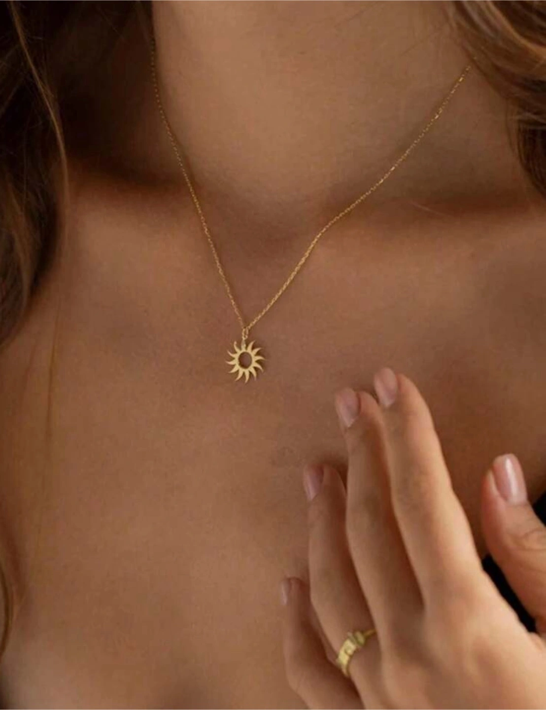 670Selling a cute necklace with a sun pendant. It's in great condition and would make a lovely addition to any outfit!