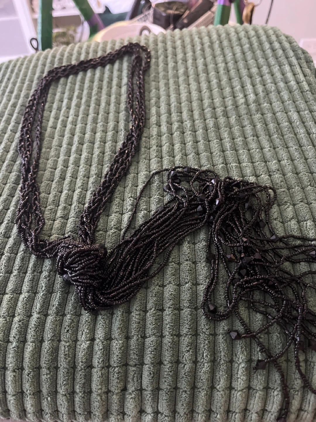 Multi strand rare seed beaded necklace. 2’ long. Black and in excellent condition