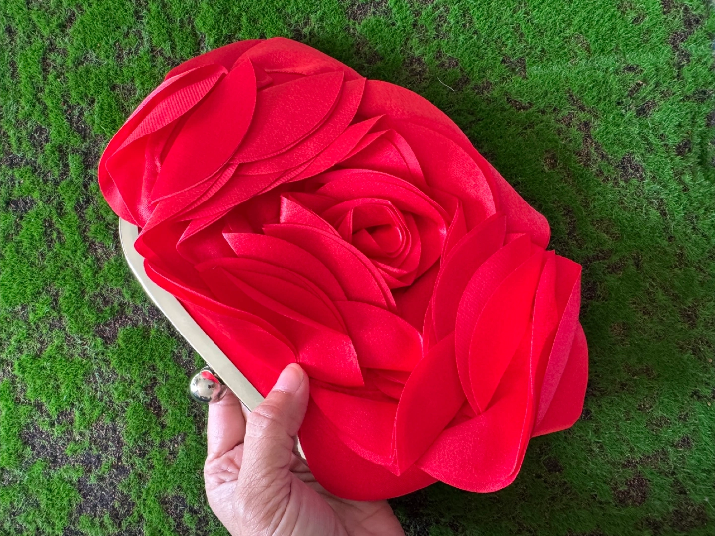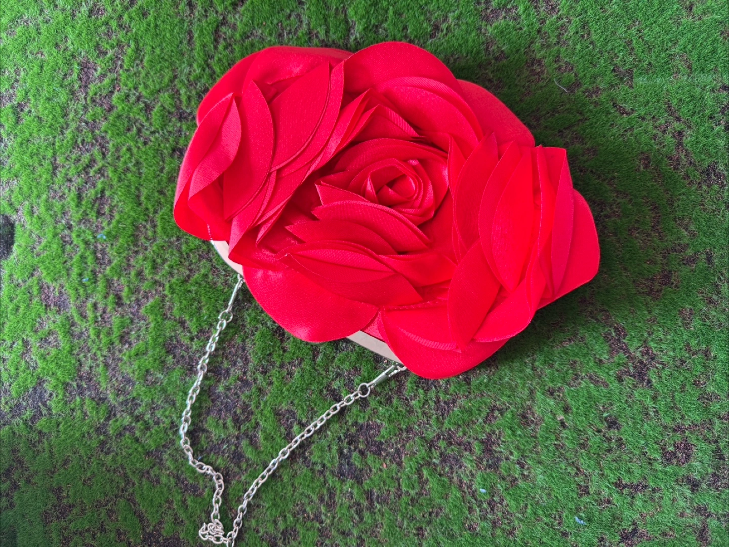 Beautiful red rose clutch purse! It's in great condition and comes with a silver chain strap. Perfect for a special occasion or a night out