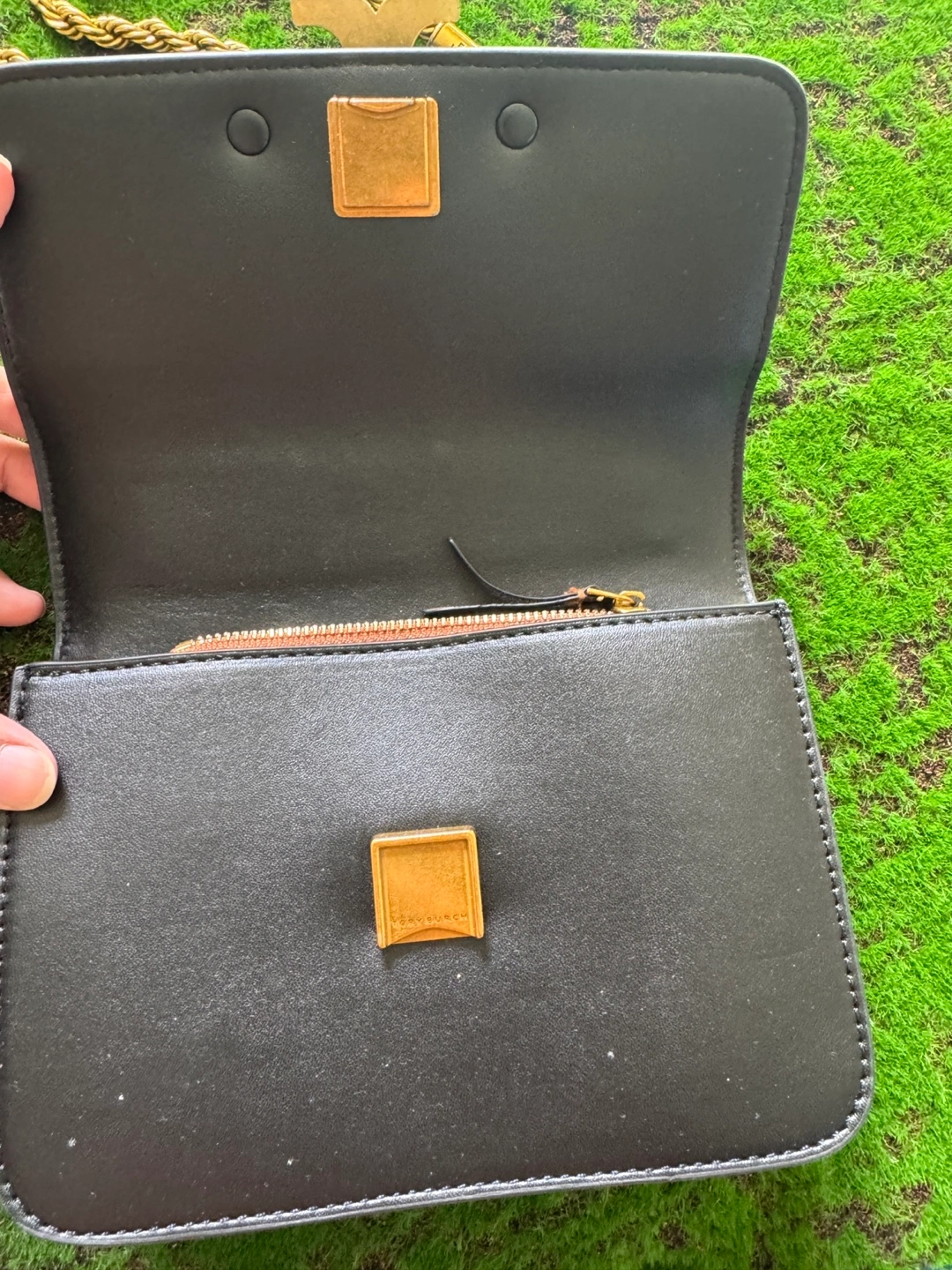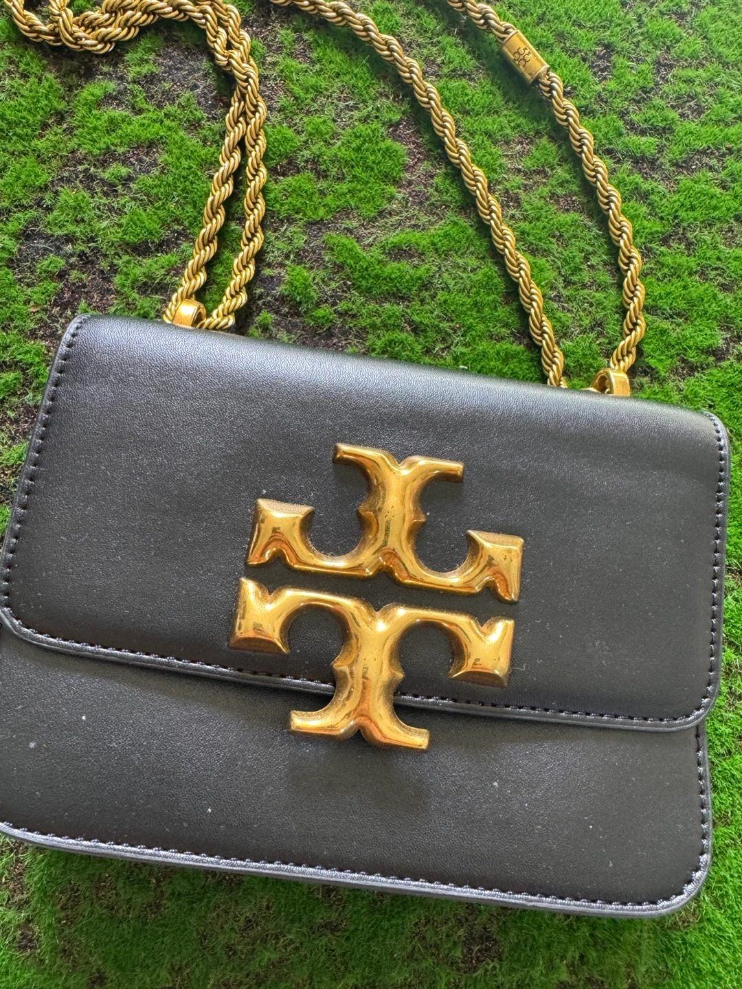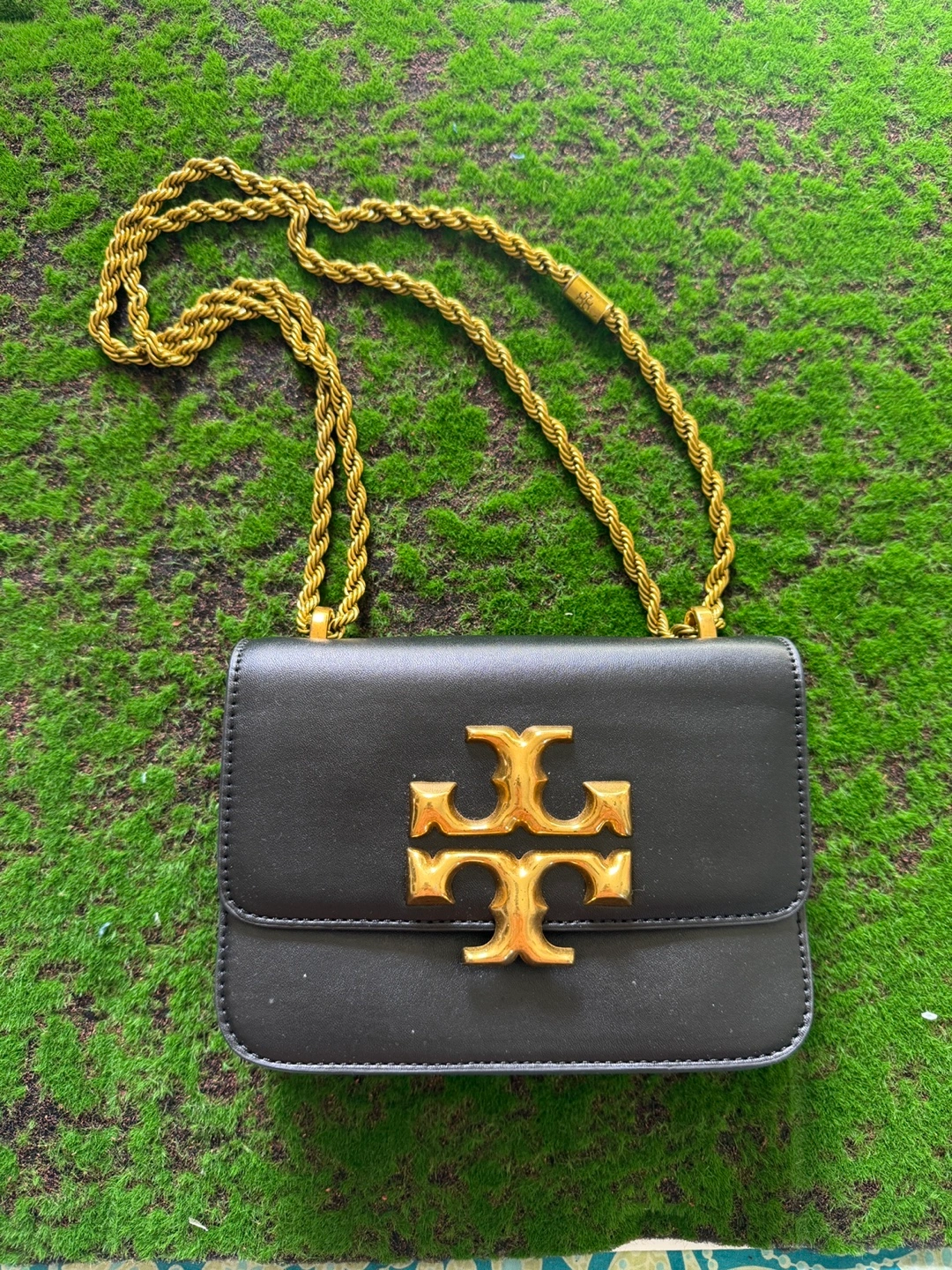Selling a gently used Tory Burch crossbody bag. It's black leather with a gold chain. The bag is in great condition and perfect for everyday use!
