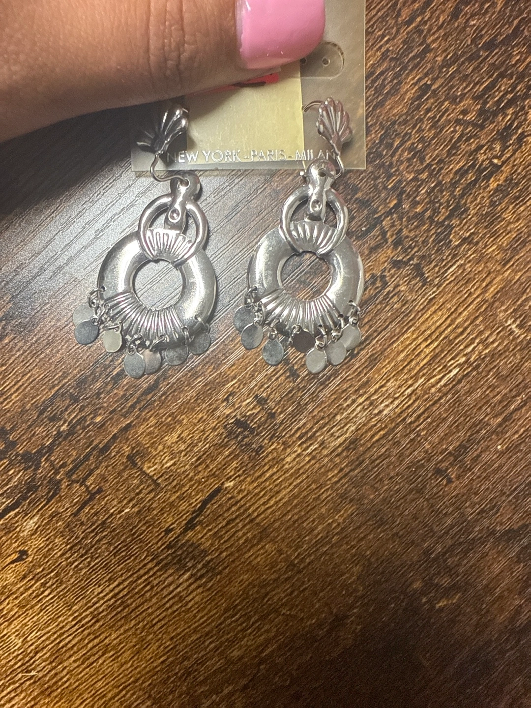 These are silver-tone dangle earrings, perfect for adding a touch of style to any outfit! They feature a unique design with small dangling accents.