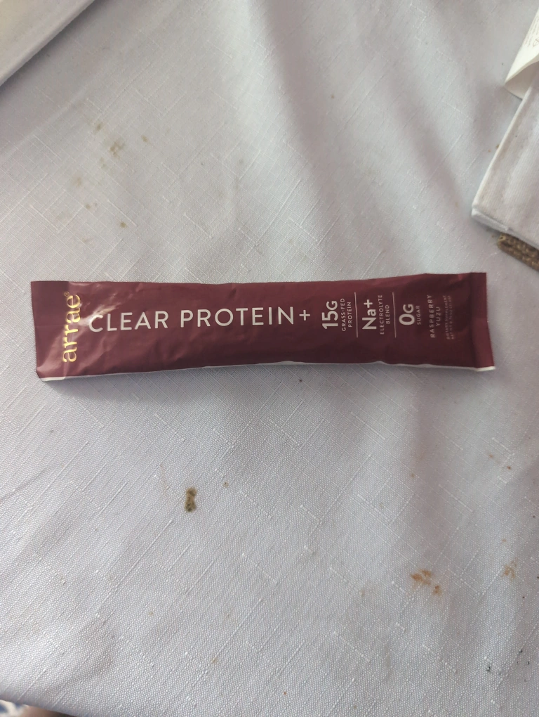 52Arrae Clear Protein+ in Raspberry Yuzu flavor. Each serving contains 15g of grass-fed protein and an electrolyte blend with zero sugar. Perfect for a quick protein boost!