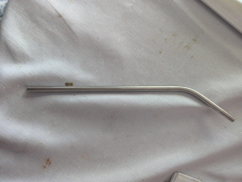 52Selling a metal straw, perfect for reducing plastic waste. It has a slight bend for easy sipping. Great for drinks on the go!