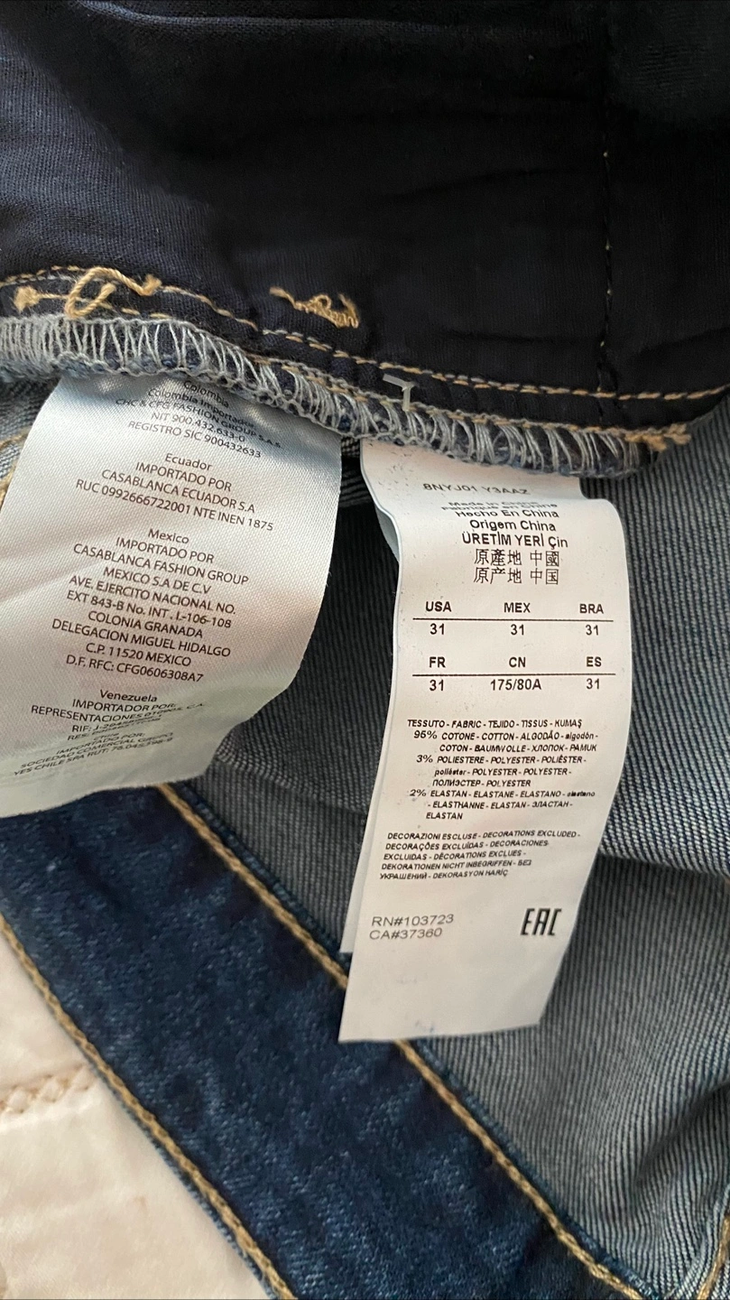 Selling a pair of Armani Exchange jeans in size 31R. They're in great condition and ready for a new home! The jeans are a stylish dark wash and have a comfortable fit.