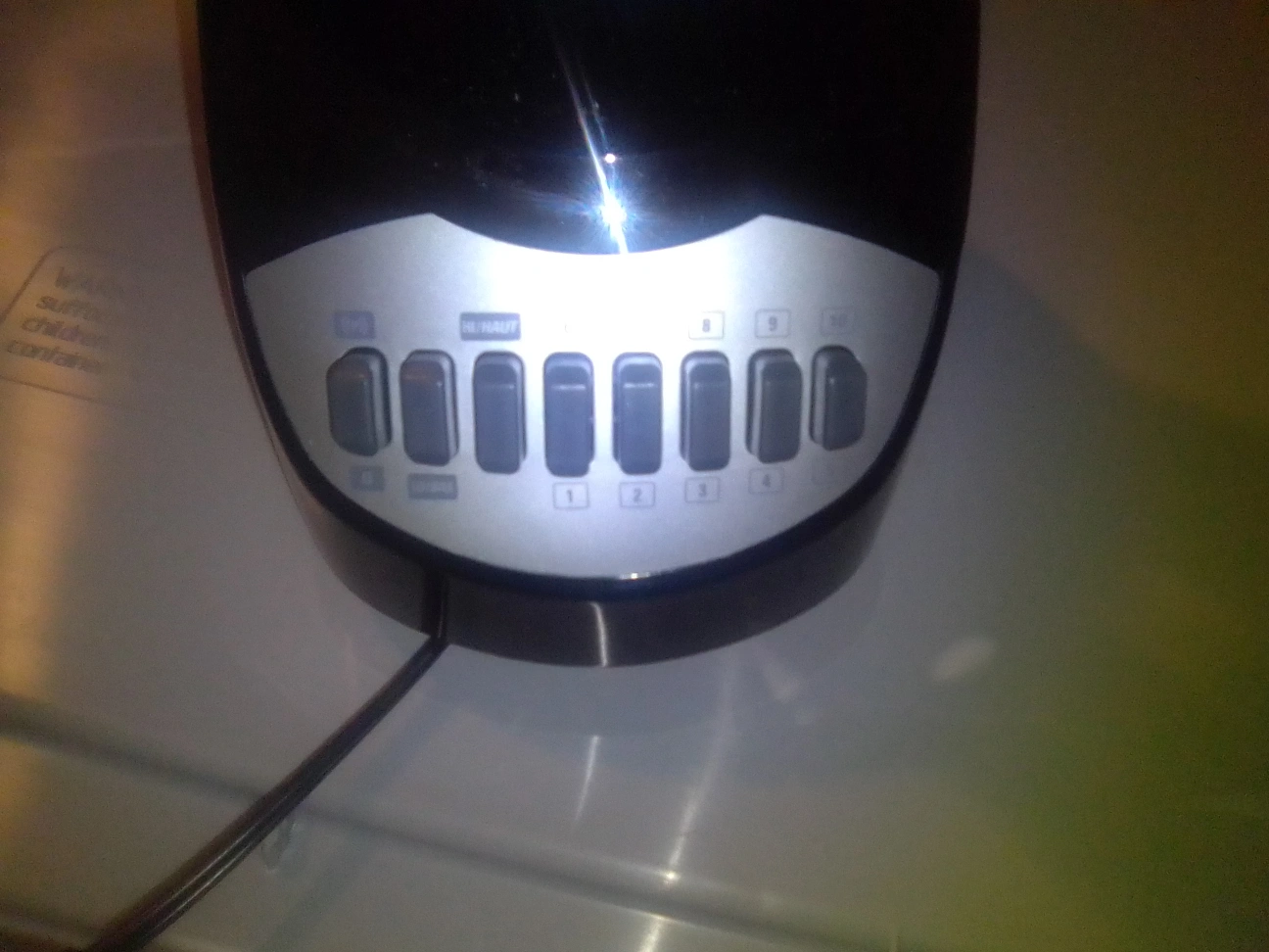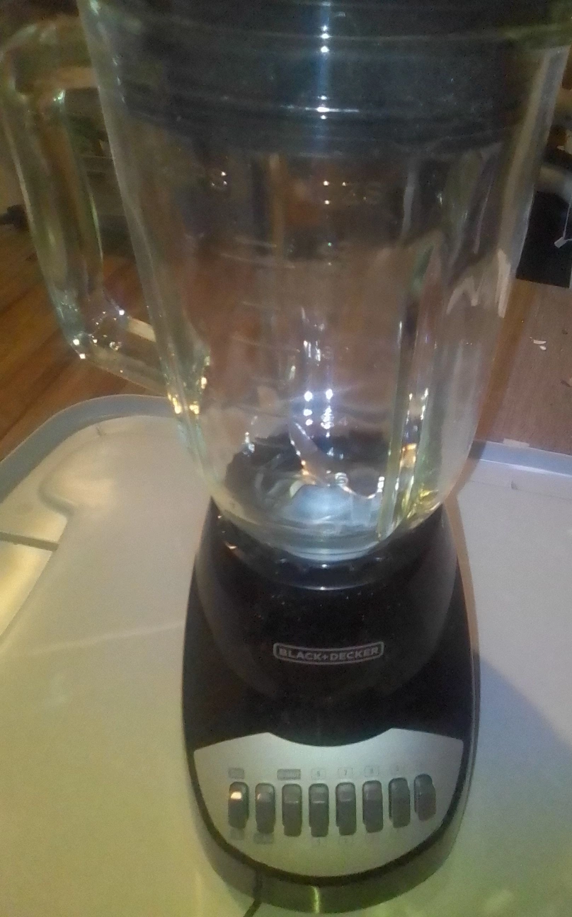 Selling a Black+Decker blender. It has a glass pitcher and a black base with multiple speed settings. Great for making smoothies or other blended drinks