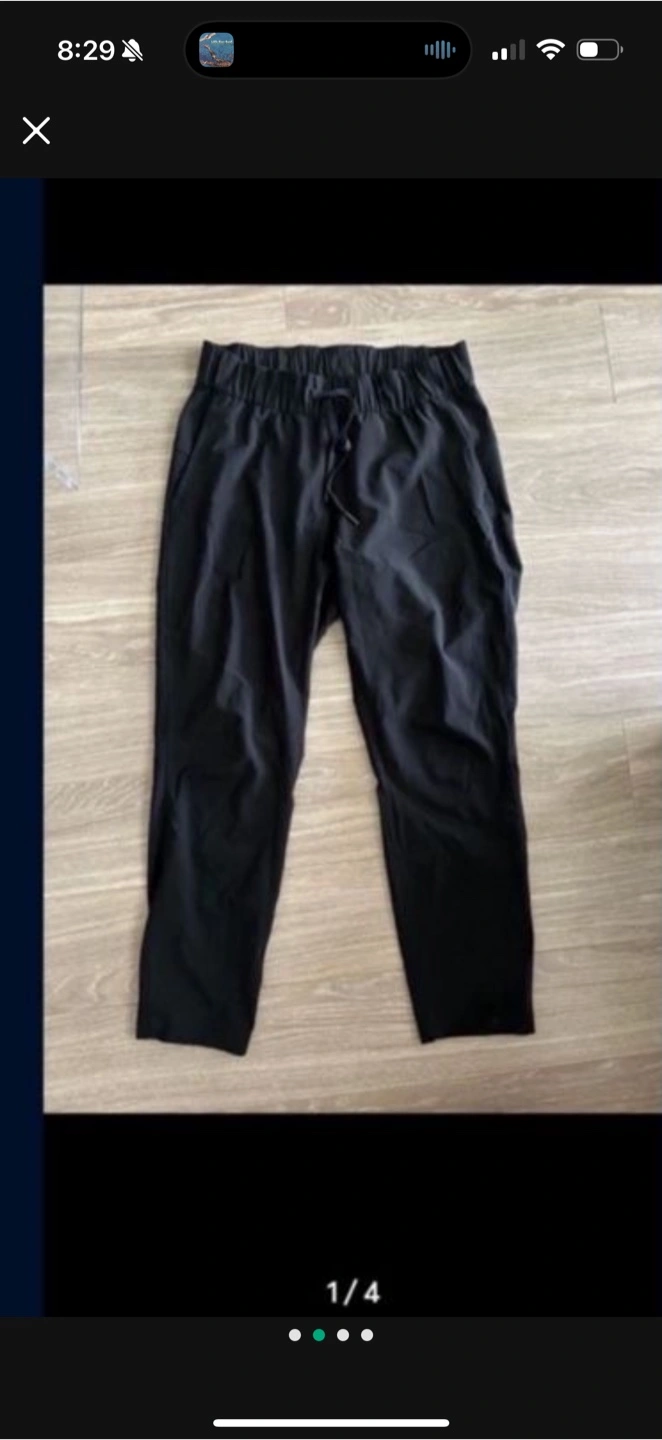 10Selling a pair of gently used Lululemon cropped pants in black! They are a size 6 and feature a comfortable elastic waistband. Perfect for workouts or casual wear!