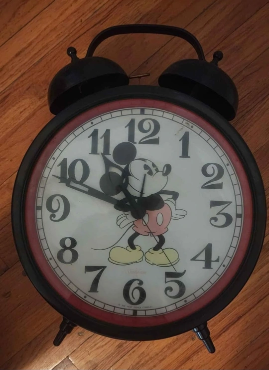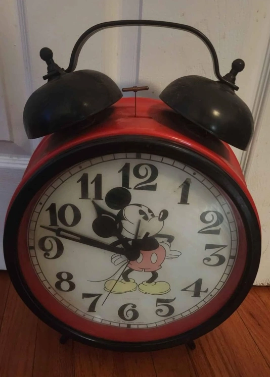 Selling a vintage Disney Mickey Mouse alarm clock! It's a charming piece that would look great in any Disney lover's collection or as a fun addition to a bedroom. The clock features a classic design with Mickey Mouse prominently displayed on the face. It's in good condition for its age, ready to bring a touch of nostalgia to your home